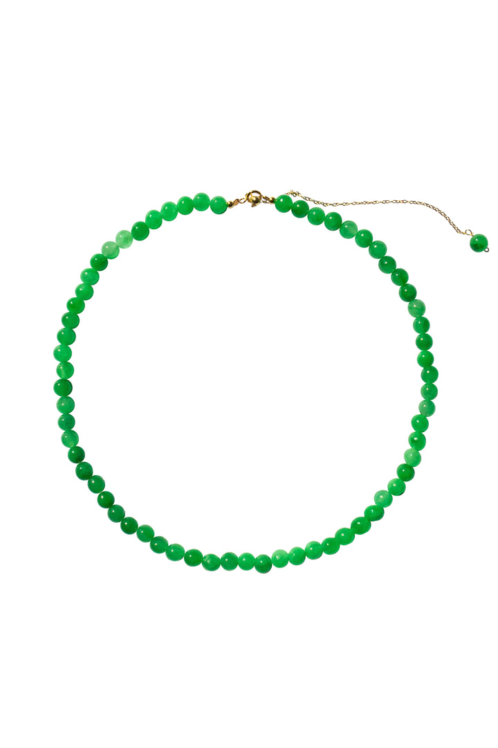 This necklace is made of vibrant green jadeite beads.