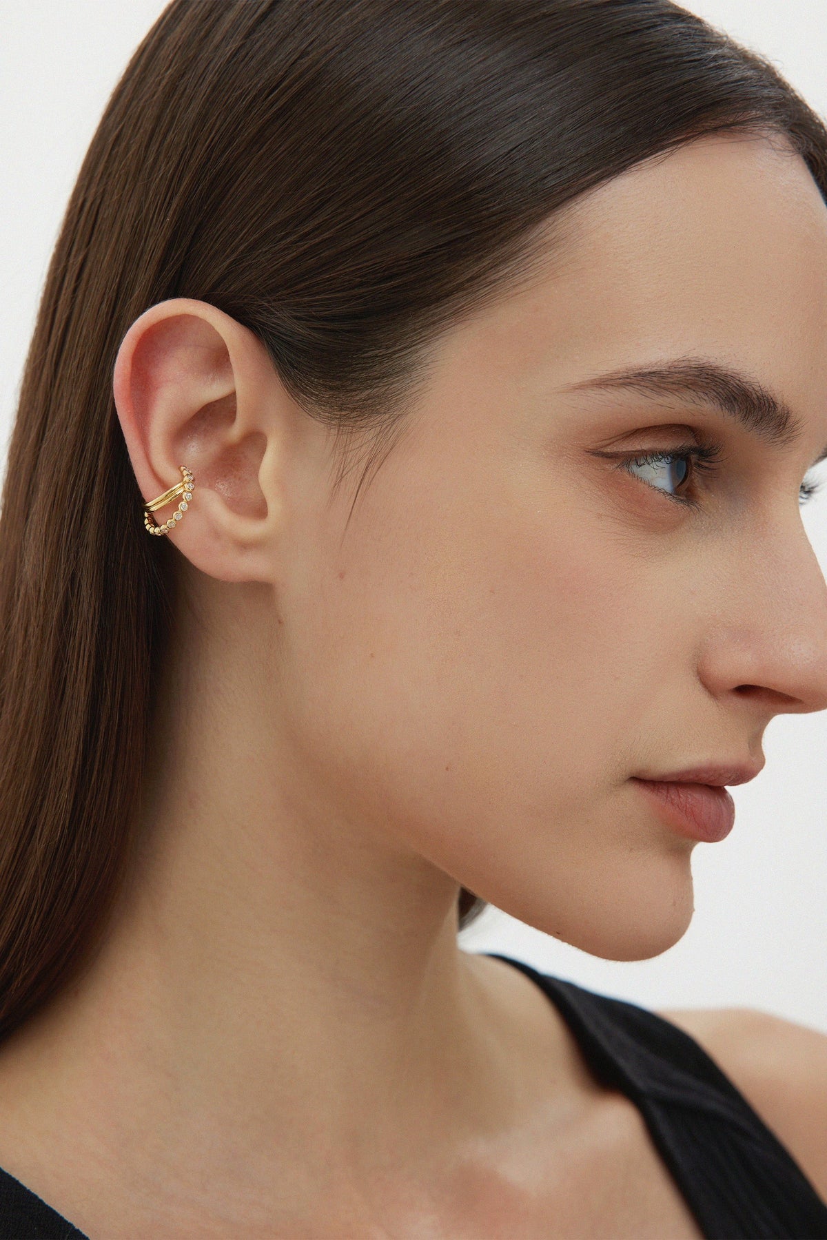 Vina Crystal Bezel Ear Cuff In Silver