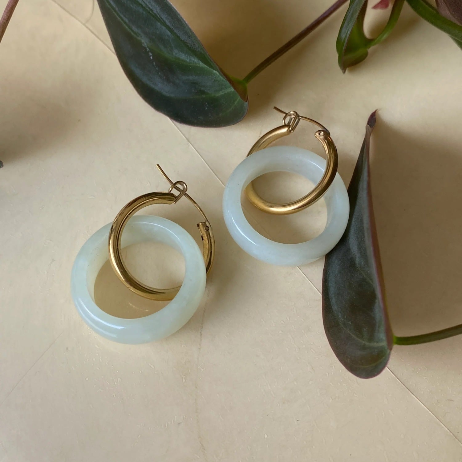 Amelie Skinny Jade Stone Hoop Earrings - Off White