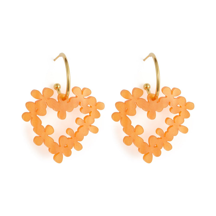 These Mini Hearts In Flowers by Toolally are a petite but impactful accessory, perfect for adding a touch of love and whimsy to your look. These gorgeous earrings are more delicate than the originals but make no less of a statement with their beautiful orange color and gold vermeil. They are a symbol of charming style and are perfect for adding a romantic and playful touch to any outfit, from a spring date to a summer picnic.
