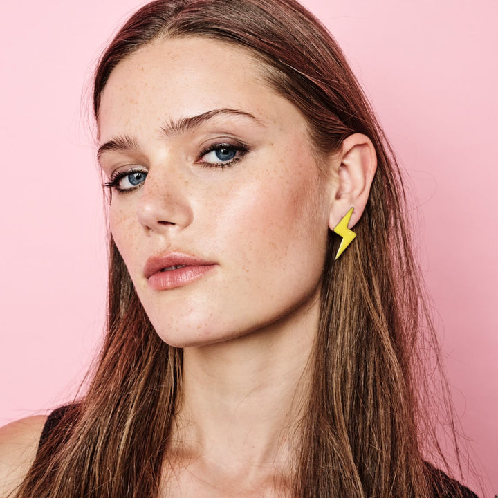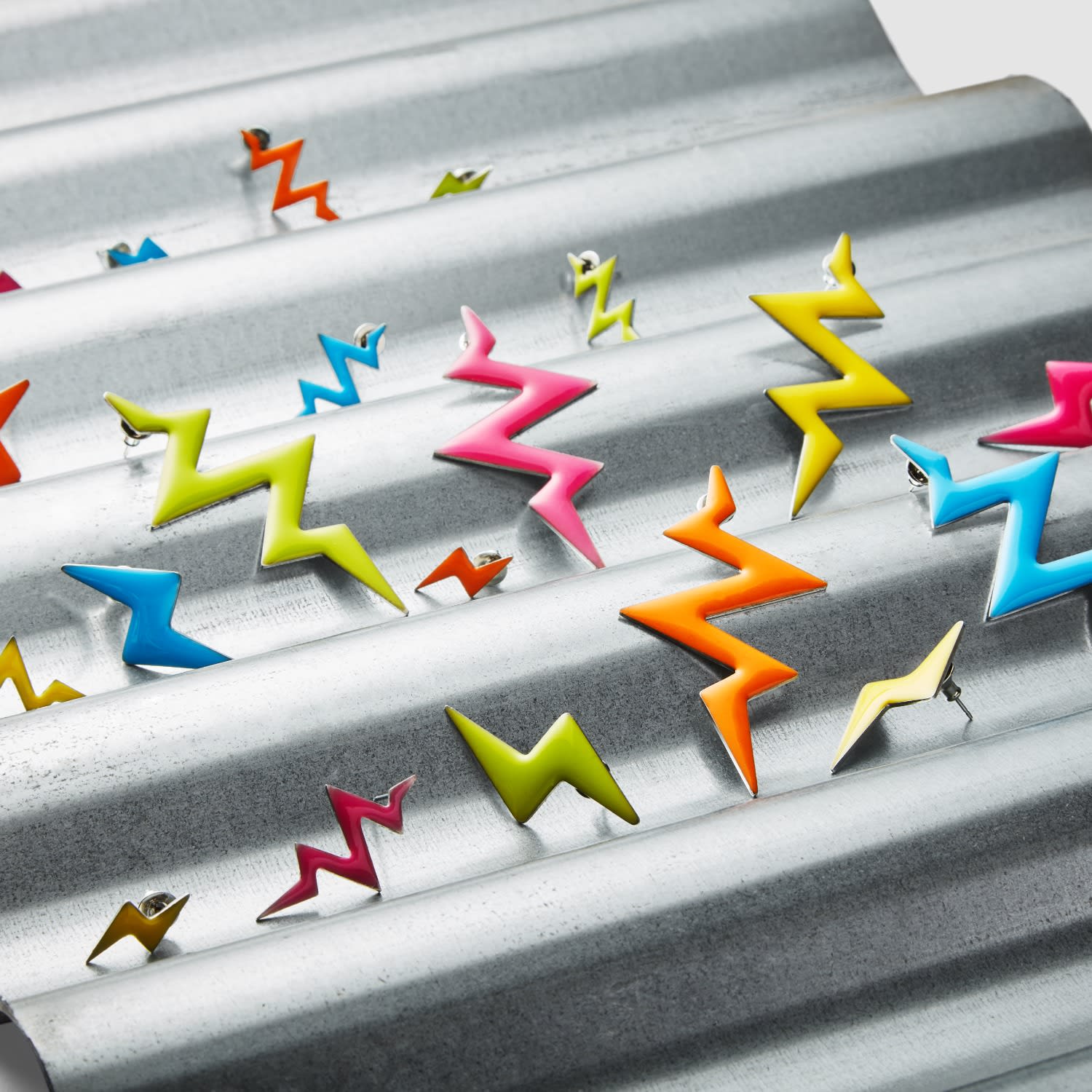 These Mini Bolts- Lime Green Enamel by Toolally are a striking and versatile pair of studs. Designed to create a dynamic effect, these mini bolts can be worn solo for a bold flash of color or layered with other pieces from the Beats and Bolts series for a complete, edgy look. The dark stainless steel is coated in a vibrant lime green enamel, making them perfect for adding a pop of color to any outfit, from casual to party wear.