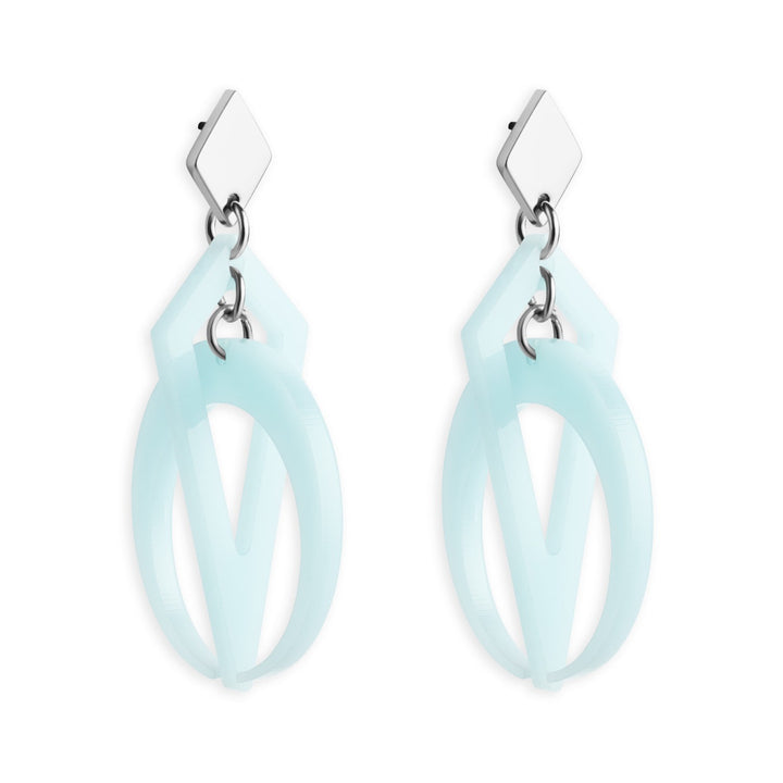 These hoops are crafted from solid brass with a rhodium plating and feature a surgical steel ear post. They have an Island Blue finish.
