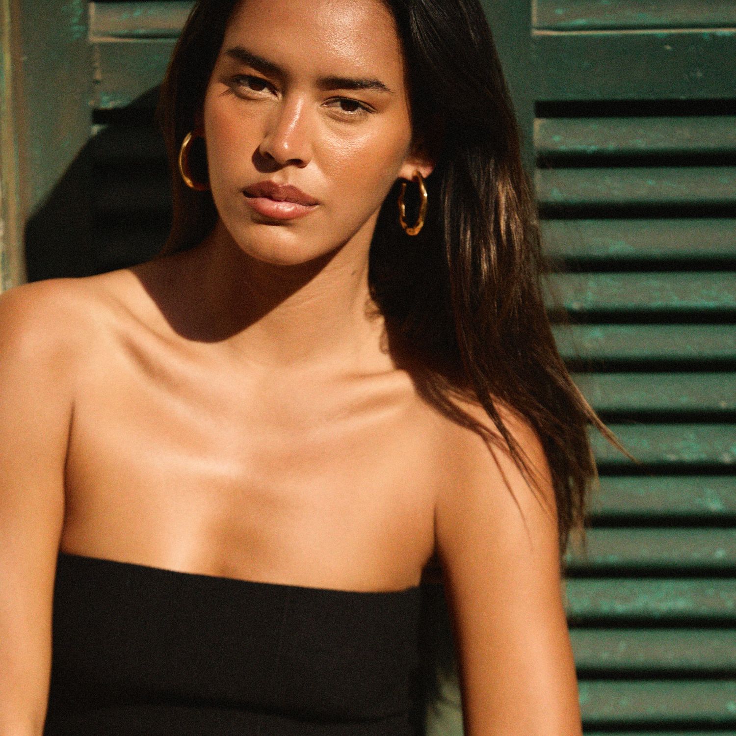 These large hoop earrings are crafted from stainless steel with PVD plating. They are waterproof, sweat-proof, and tarnish-free.