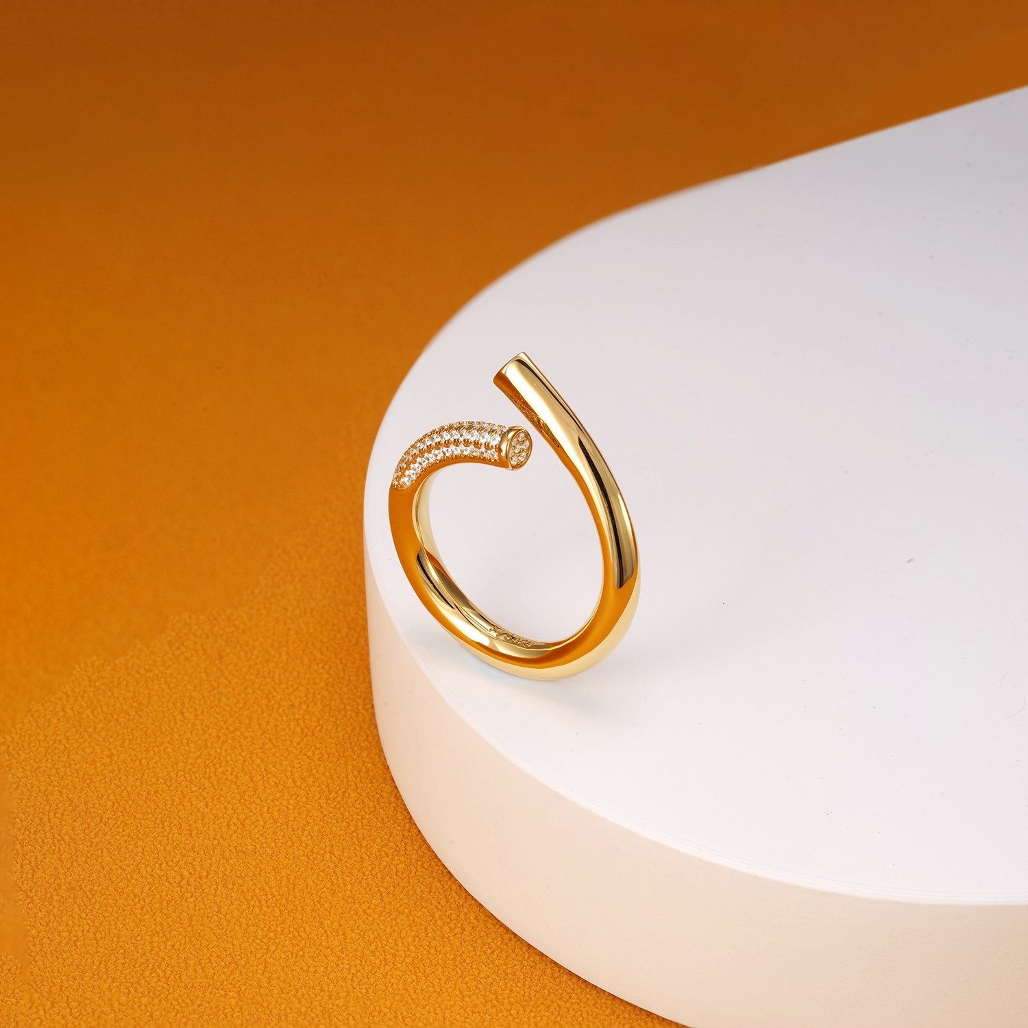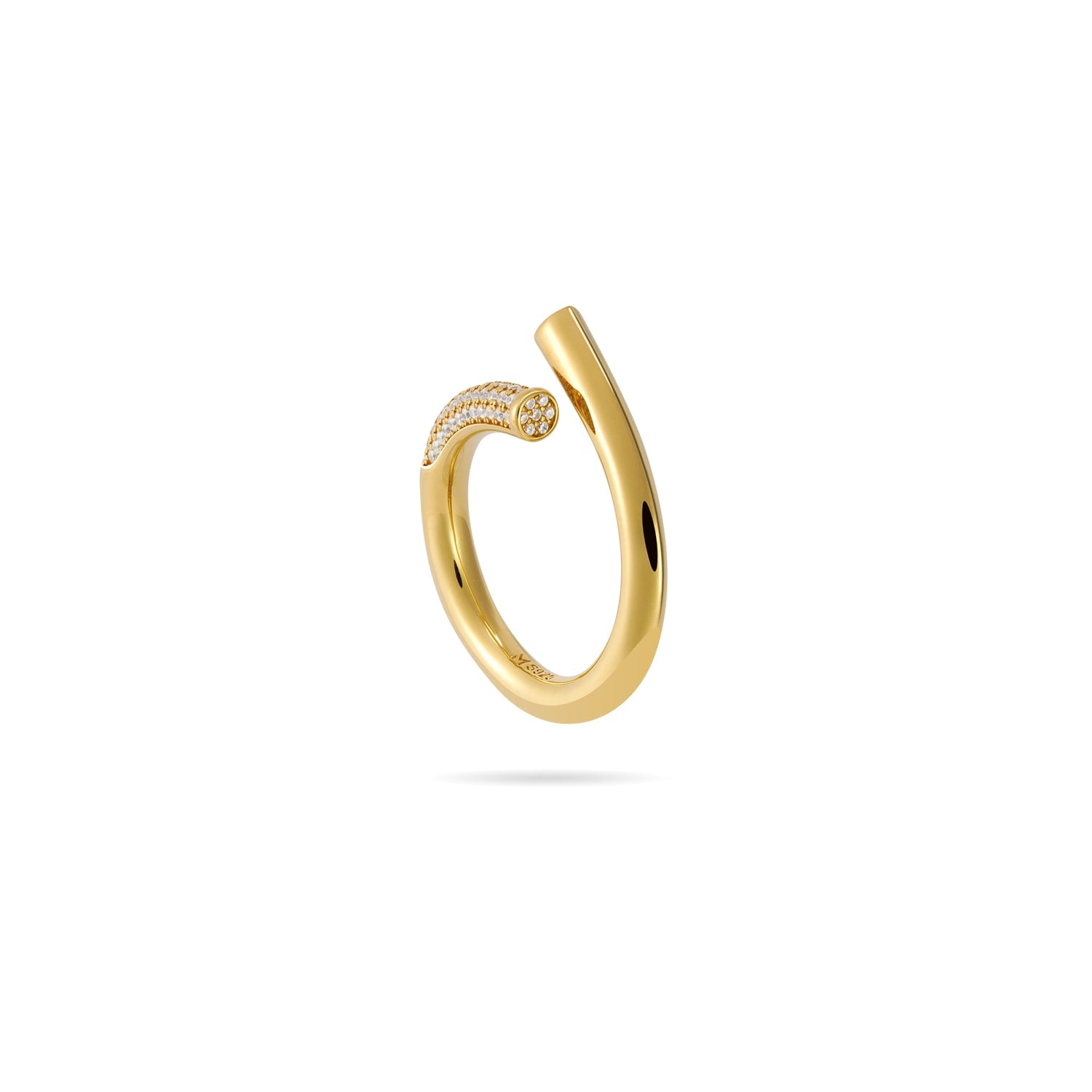 This adjustable ring is crafted from 18K vermeil and features micro-pave Moissanite stones.