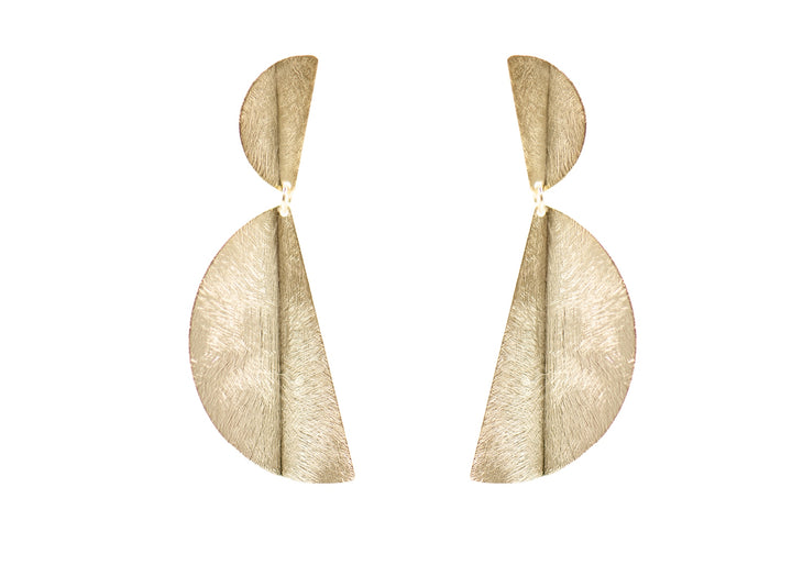 The Leigh Earrings by Marcia Moran offer geometric modernity with a touch of bold glamour. Two half-circle shapes create a clean architectural silhouette, hand-finished with radiant 18k gold plating. Contemporary and versatile, they make a sophisticated statement.