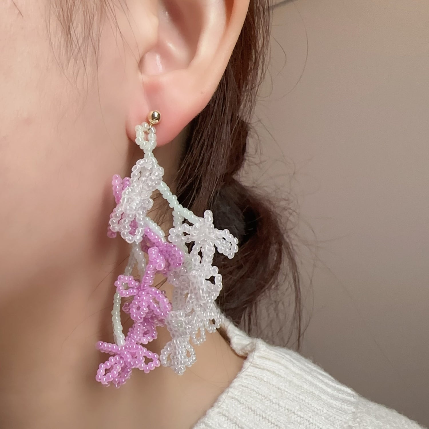The Cherry Blossom Cascade Earrings by Ninemoo are a delicate and romantic accessory. The inspiration for the earrings comes from the natural beauty of cherry blossoms in full bloom. The studs are made of 925 silver/brass plated with gold/glass. They capture the delicacy and romance of cherry blossoms in their design.