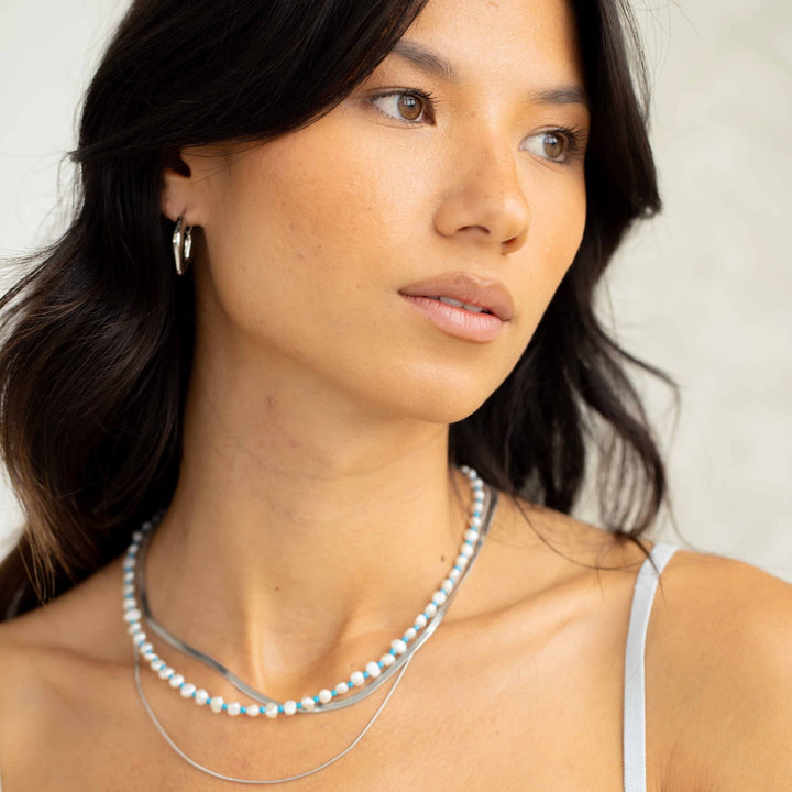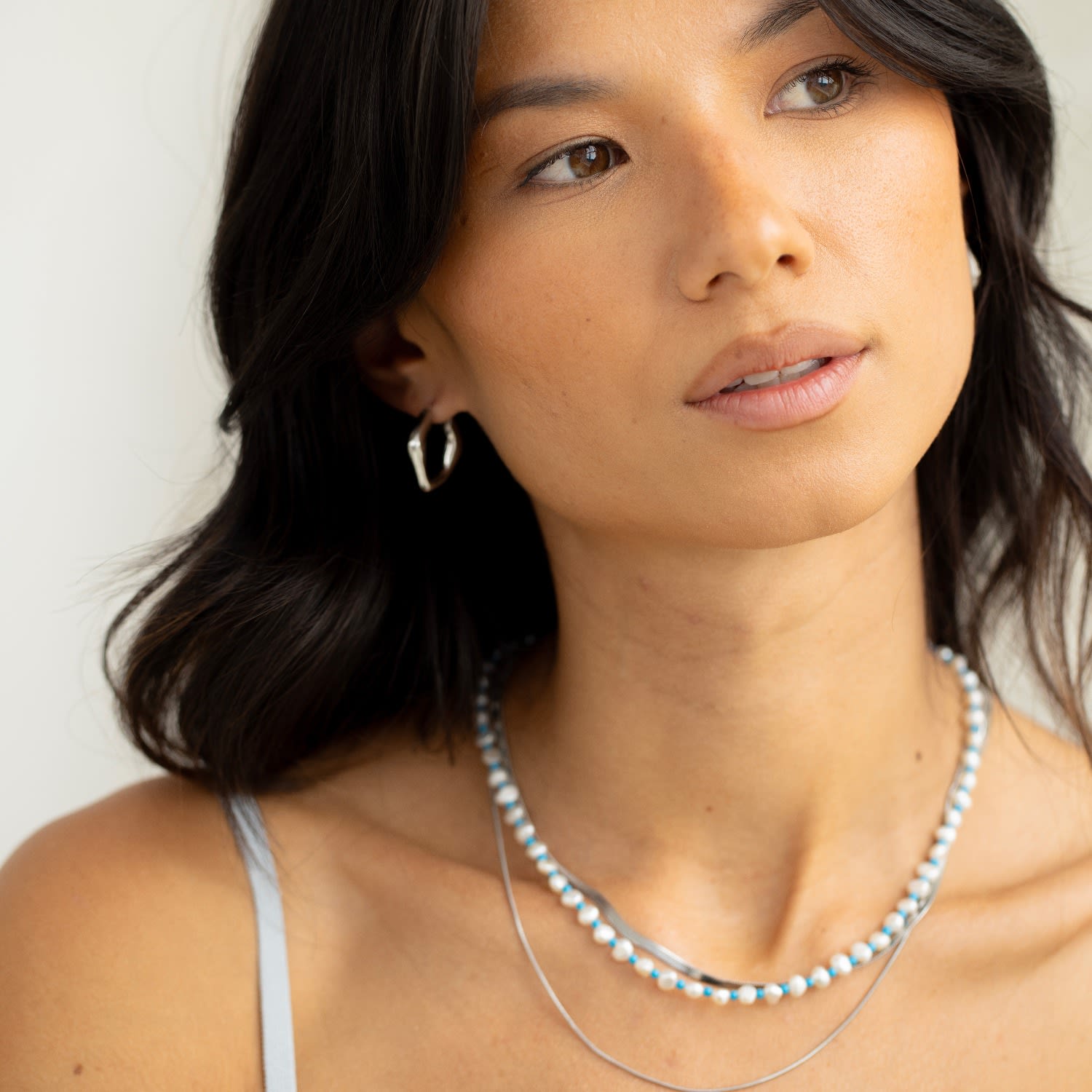 This Turquoise And Baroque Pearl Necklace by Arctic Fox & Co. is a playful and vibrant accessory that radiates positivity and joy. The combination of vibrant turquoise fire opal beads and natural baroque pearls creates a unique and captivating contrast, celebrating both color and organic beauty. This necklace is a mood-boosting statement piece, perfect for adding a dose of "dopamine dressing" to your style. It symbolizes optimism and a free-spirited, artistic personality.
