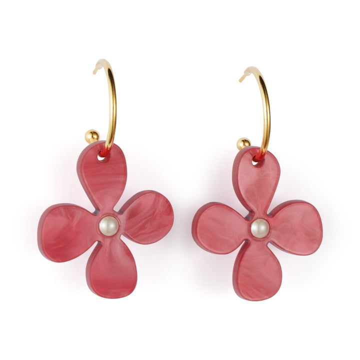 Daisy Hoop Earrings - Cerise