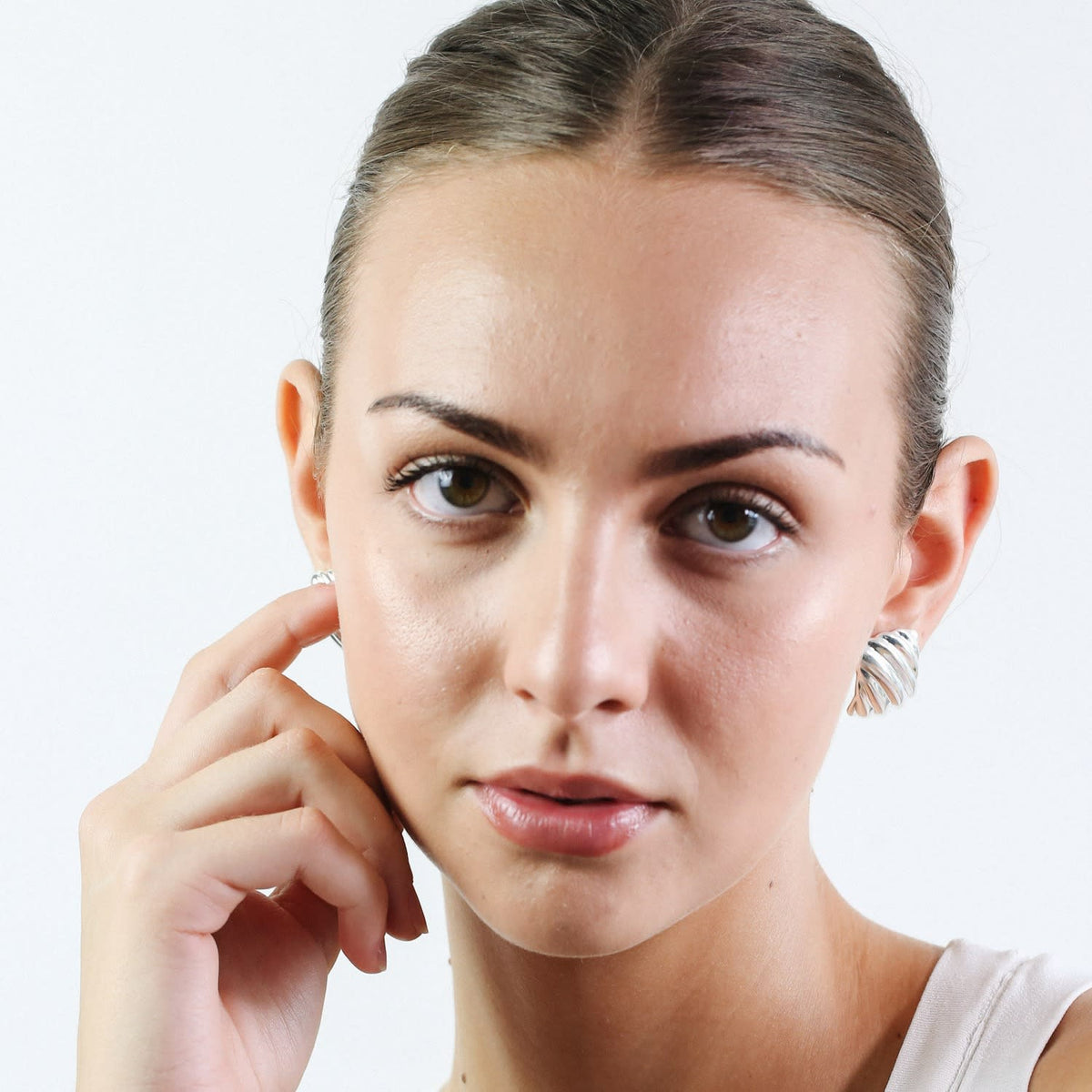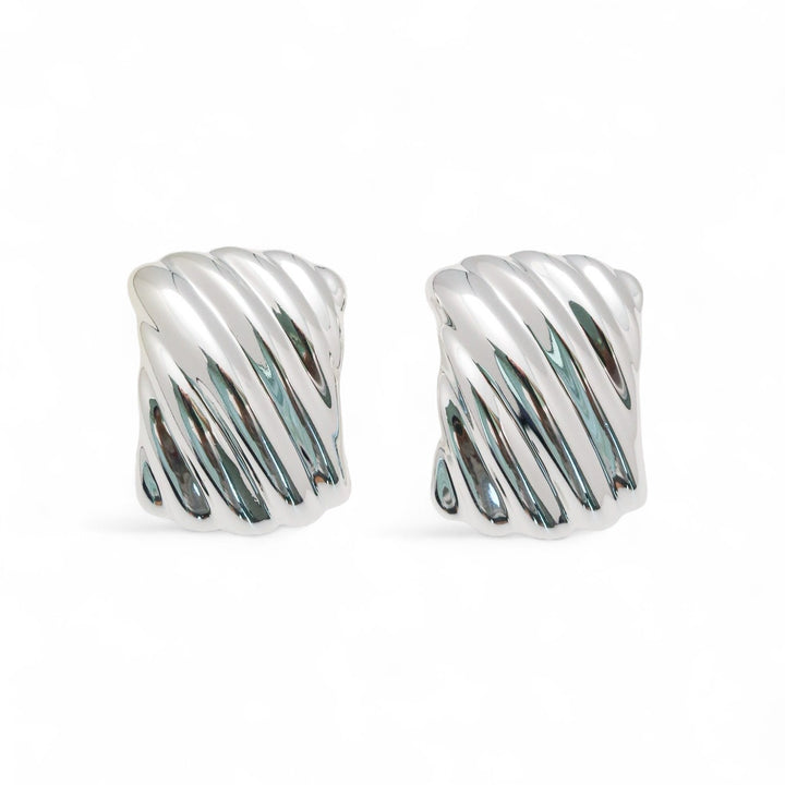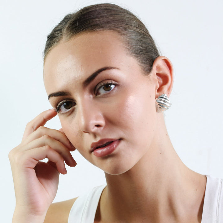 These oversized stud earrings are crafted from durable brass with a 925 silver plating. They measure 2.5cm x 1.8cm.