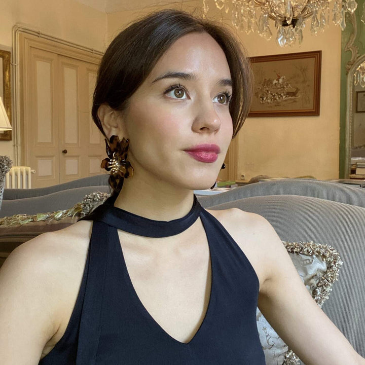 These Tortoise Floral Resin Drop Earrings by Michael Nash Jewelry are a dramatic and bold accessory, perfect for making a fashion statement. The oversized floral design and vibrant orange color are crafted to turn heads and command attention. Made from lightweight resin, they offer comfortable wear without compromising on style. Their theatrical flair makes them a must-have for anyone who wants to add a powerful and eye-catching element to their look.