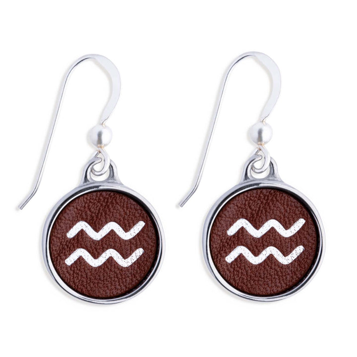 These Zodiac Aquarius Brown Leather Earrings by N’damus London embody progressive and creative Aquarius energy. Featuring hand-cut, vegetable-tanned leather embossed with the zodiac motif, framed in polished silver, they symbolize individuality and vision. A distinctive, artisanal piece that celebrates astrological identity.