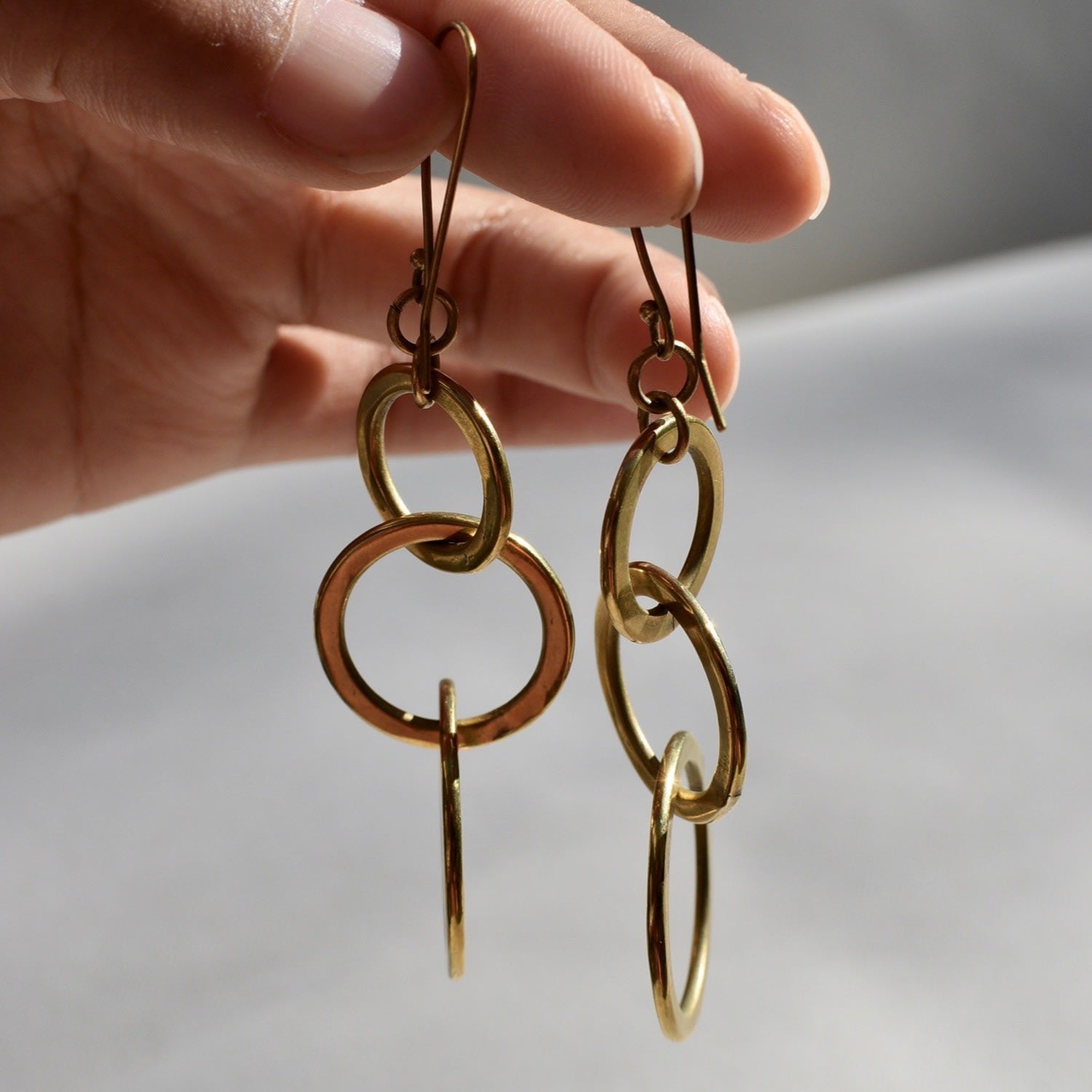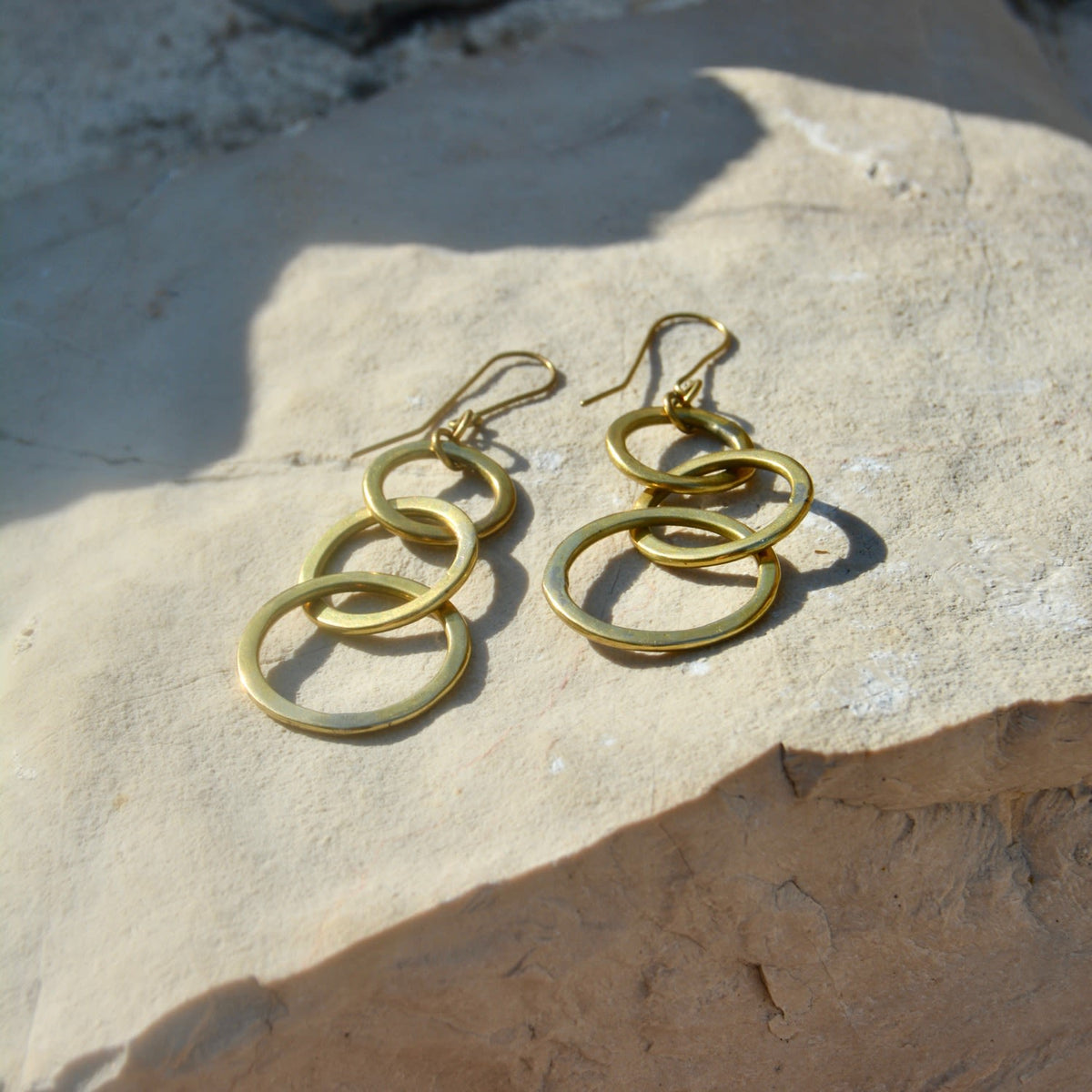 Handmade from 100% brass by artisans in Kenya; trio hoop design.