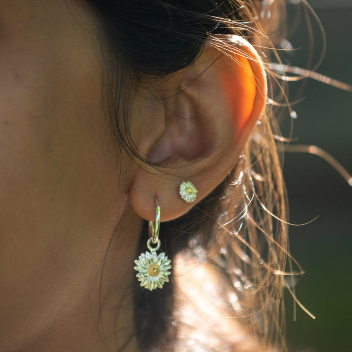 Sterling Silver Daisy Charm Hoop Earrings