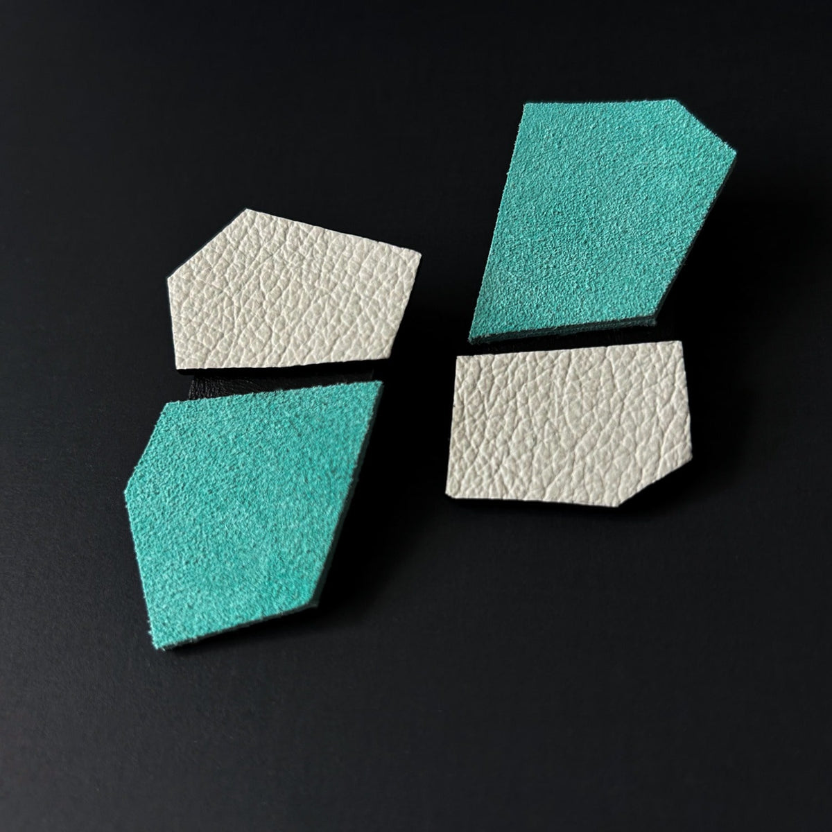 These earrings are crafted from lightweight leather. To maintain their quality, store them in a dry, cool place away from direct sunlight and avoid contact with water and harsh chemicals.