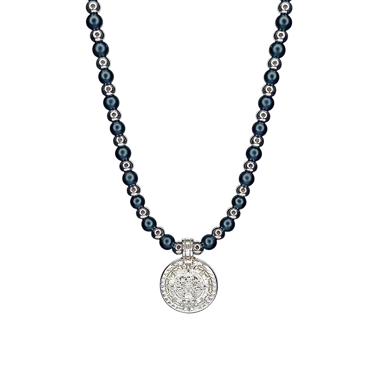 The Black Onyx Coin Necklace by Mhart is a refined and versatile piece. Handcrafted with black onyx and polished stainless steel beads, this necklace offers a sophisticated and artisanal look. Its waterproof and scratch-free design makes it durable for everyday wear, whether on its own or layered for a personalized style.