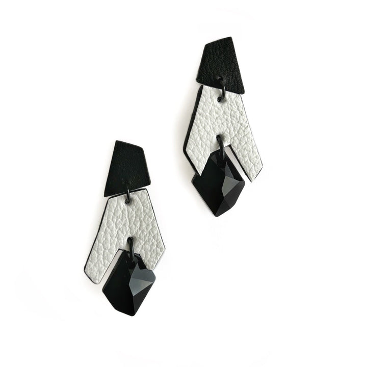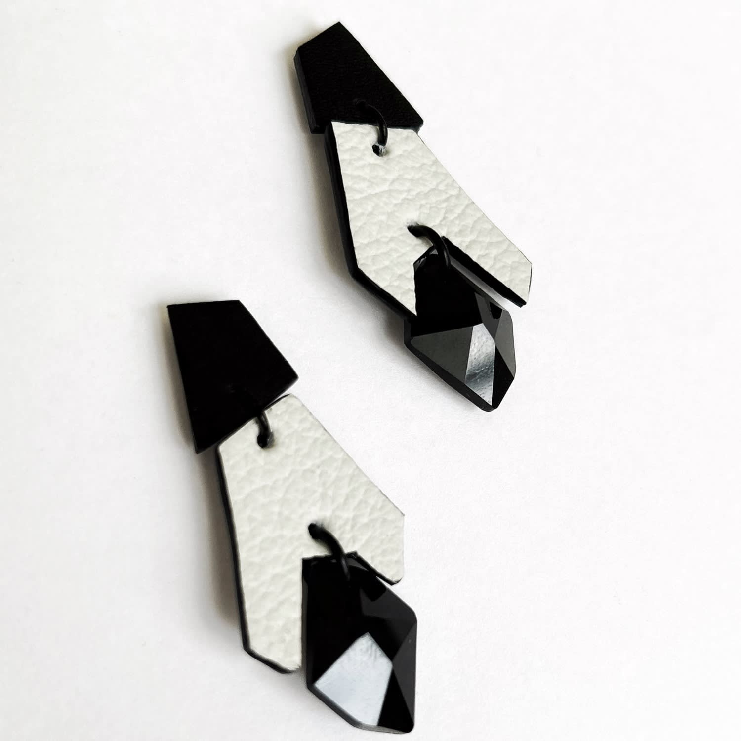 Upcycled black and white leather. Swarovski crystal bead. Handmade.