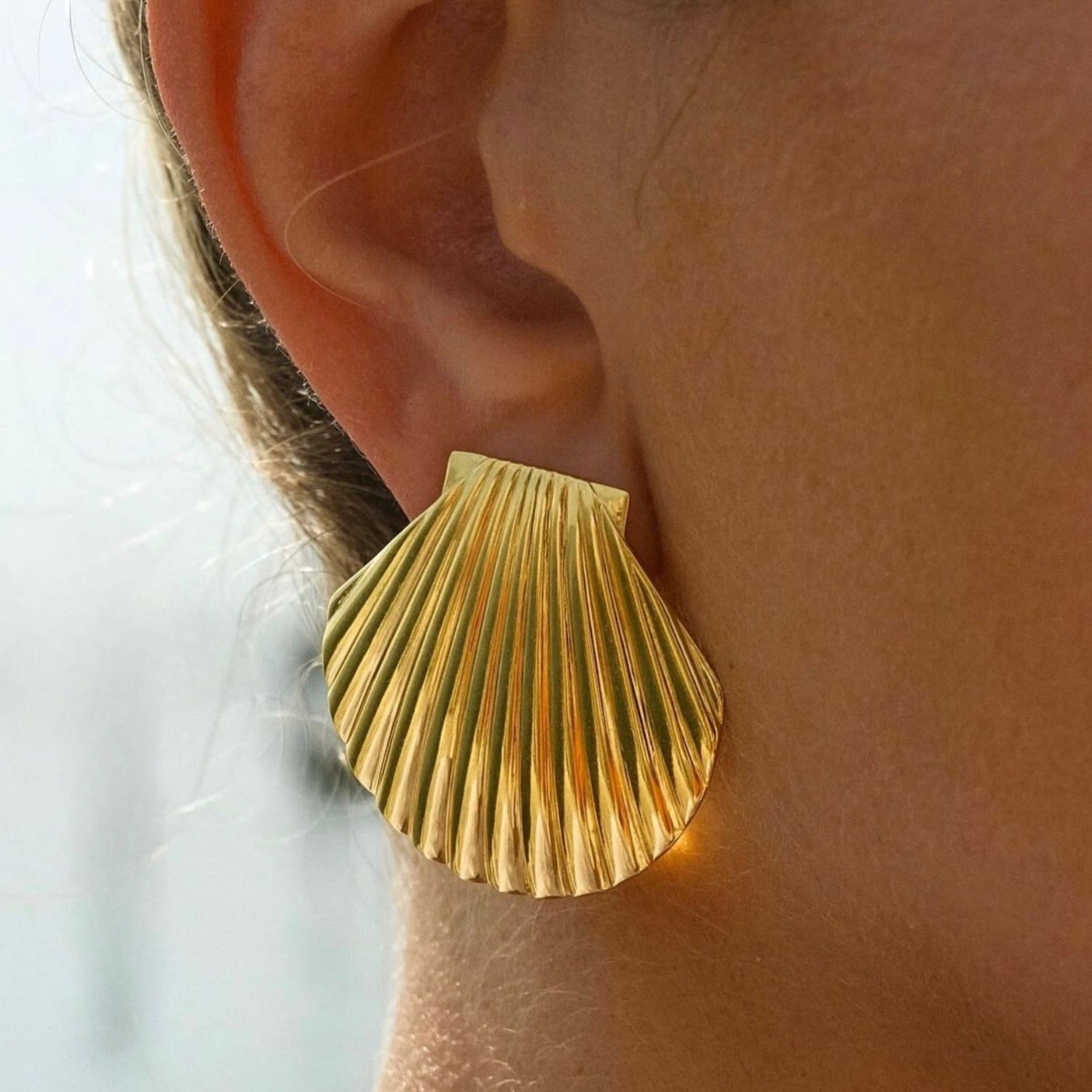These La Mer Shell Earrings Gold by Arella are a sculptural and elegant accessory inspired by the fluid shapes of the sea. Their soft, shell-like form and polished finish bring a touch of coastal elegance to any look. Lightweight and versatile, these earrings are perfect for both everyday wear and special occasions. They are an effortless statement piece that transitions beautifully from city to coast.