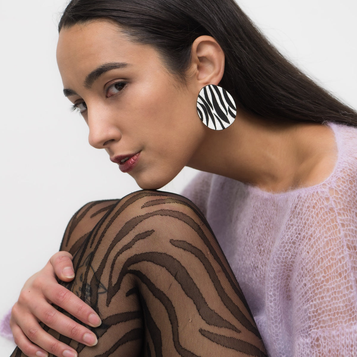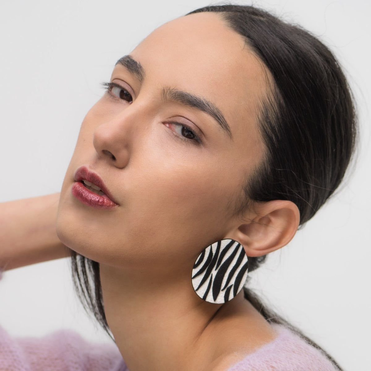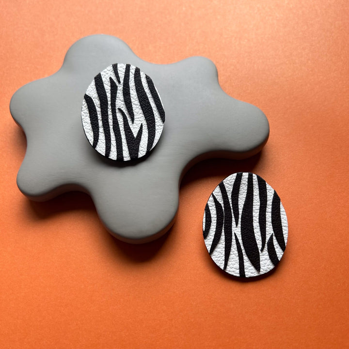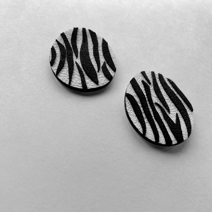 These Zebra Pattern Leather Earrings by Waiwai capture the wild energy of the animal kingdom with bold contrast. Featuring a white leather base with hand-cut black zebra stripes, they are lightweight, sustainable, and strikingly modern. Perfect as a daring statement piece, they bring edgy vibrancy and natural inspiration to any look.