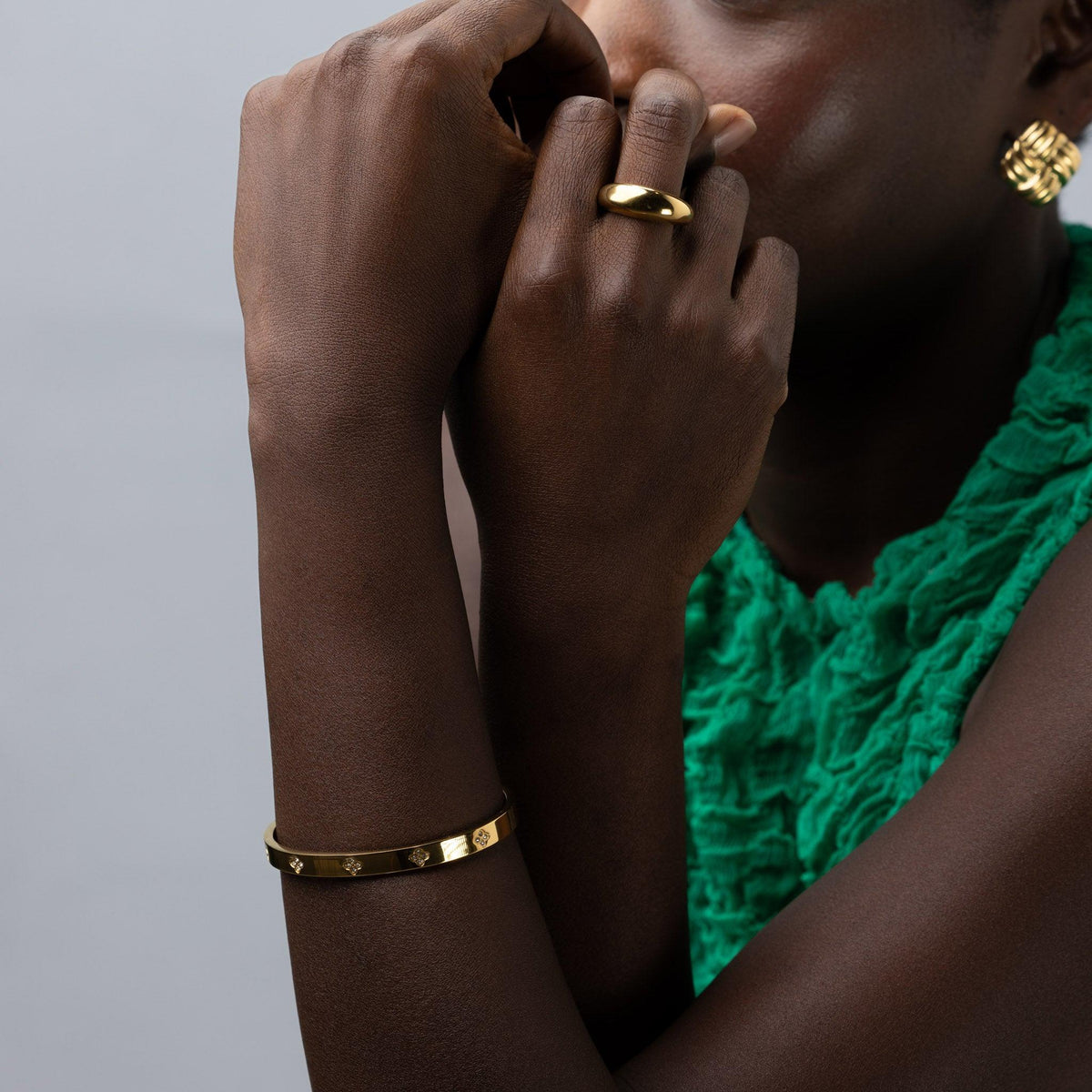 This Liv - Crystal Clover Bangle Bracelet Stainless Steel by Timi of Sweden is a stylish accessory that blends luck with luxury. The stainless steel cuff bracelet features a delicate clover and crystals, symbolizing good fortune and timeless elegance. Its durable and water-resistant construction makes it a go-to piece for everyday wear, whether you're manifesting good luck or simply elevating your style. This bangle is effortlessly chic and perfect for any occasion.