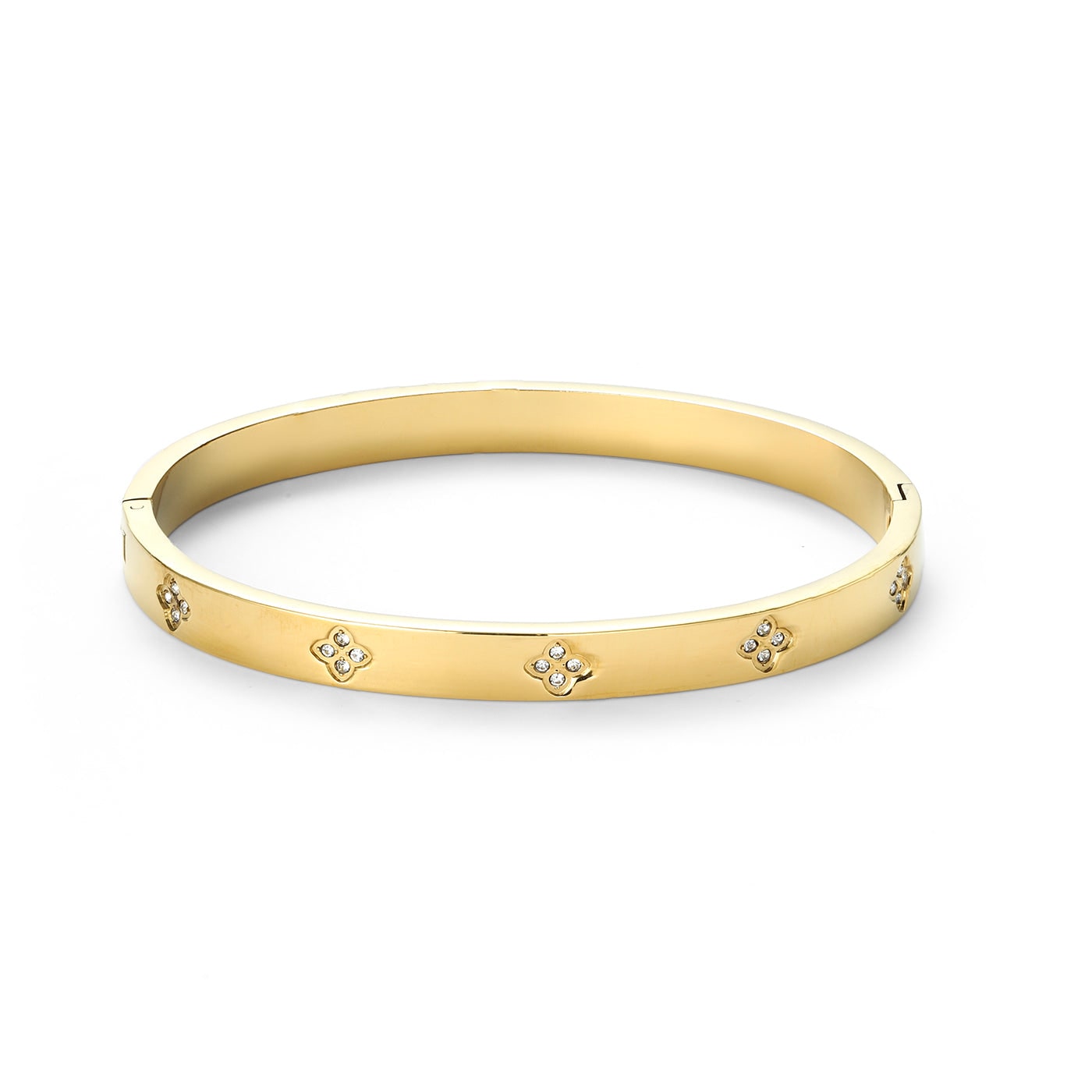 Liv - Crystal Clover Bangle Bracelet Stainless Steel