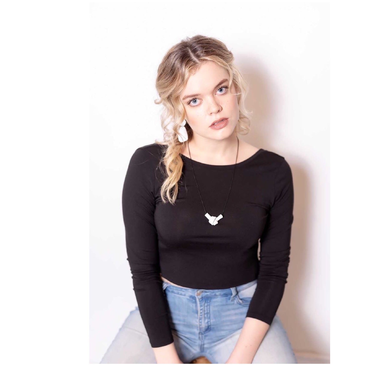 White leather with subtle stitching. Adjustable lengths: shorter (collarbone) or longer (over the heart). Handmade craftsmanship.