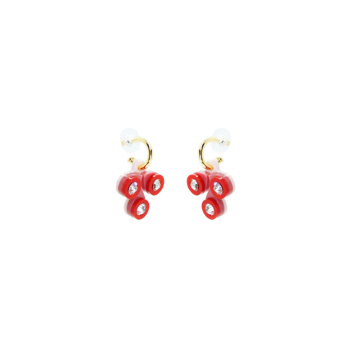 Handcrafted by Brazilian artisans, these earrings are made from acrylic, glass rhinestones, a golden finished zamak hoop, and a stainless steel pin.