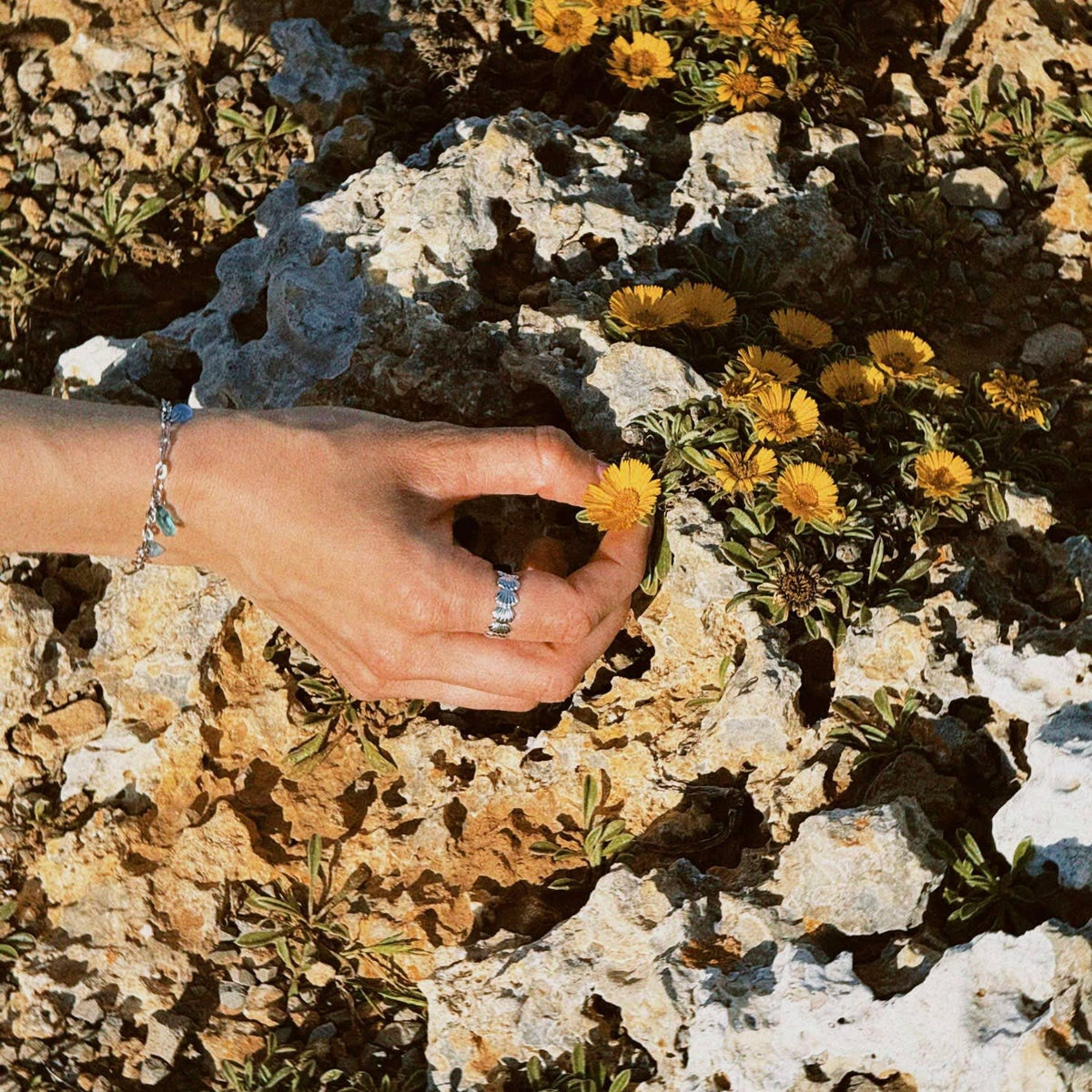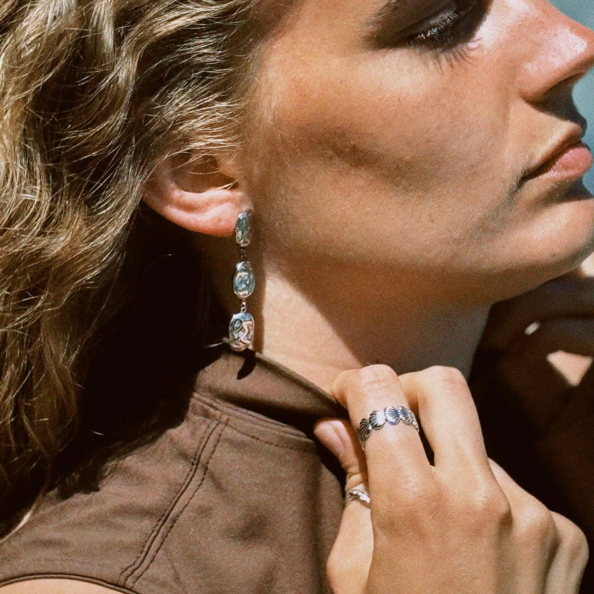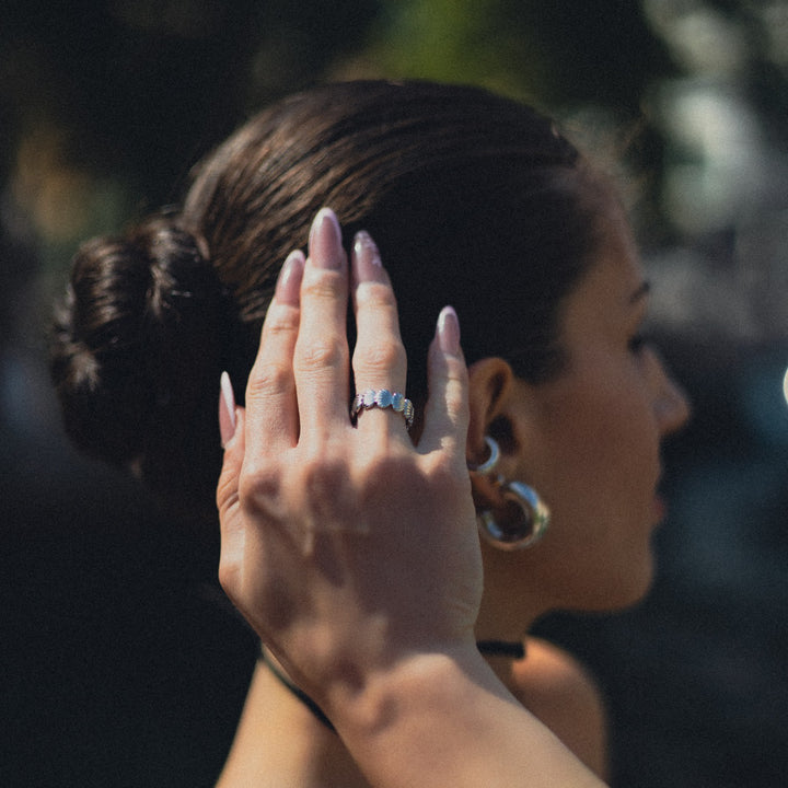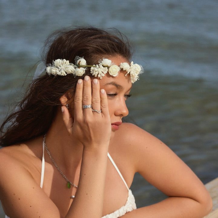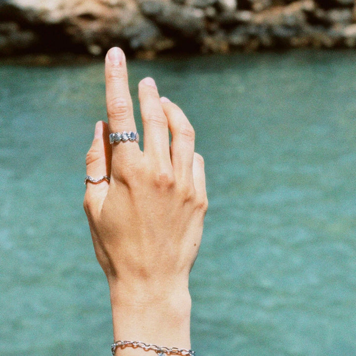 This Shells Ring by Glasstyk is a charming and whimsical piece that brings the serene beauty of the beach to your fingertips. The delicate shell design offers a gentle, natural aesthetic, perfect for those who feel a connection to the sea. It's a sweet, minimalist ring that can be worn alone for a subtle statement or stacked for a playful, textured look.