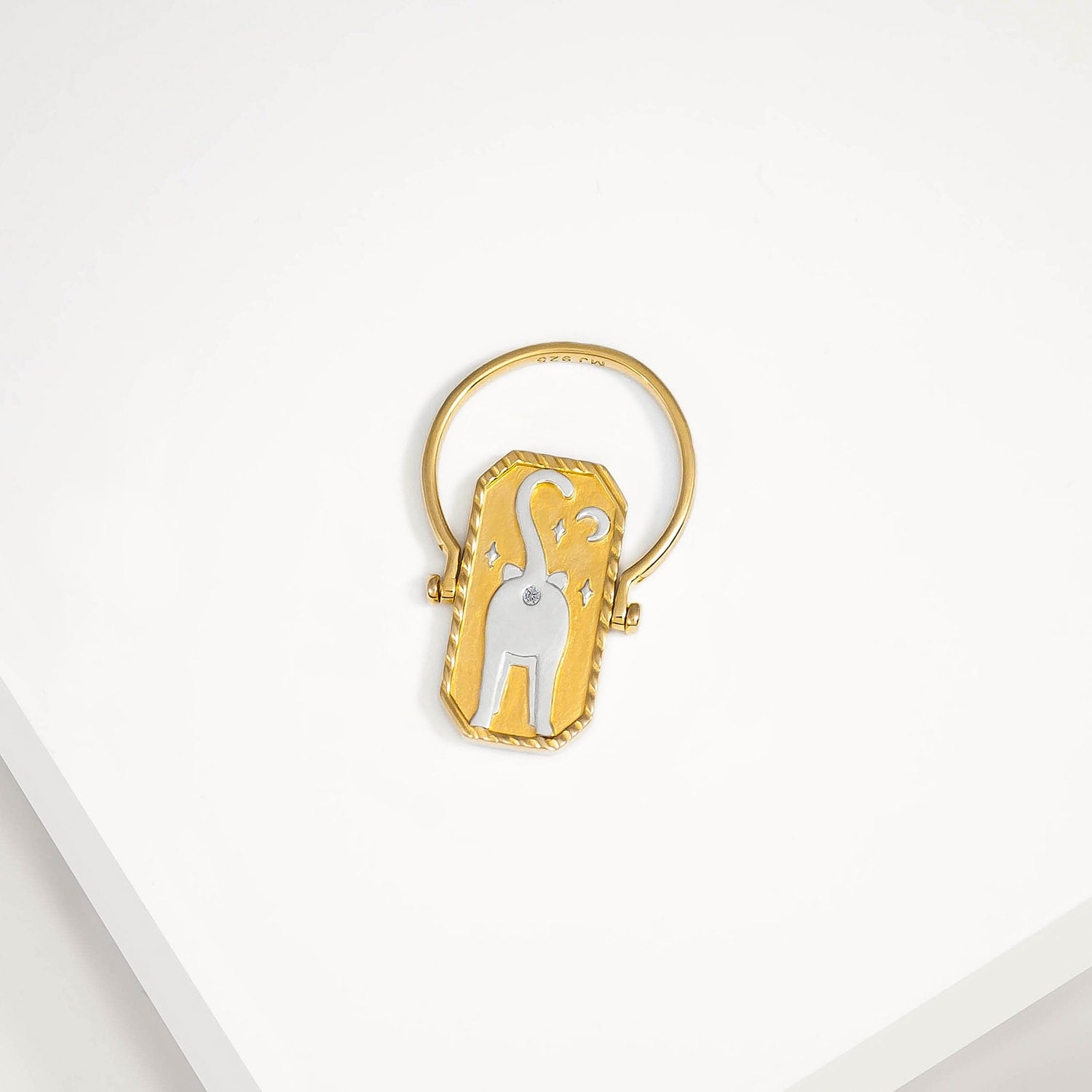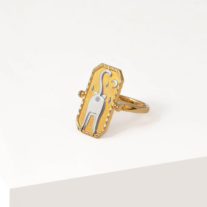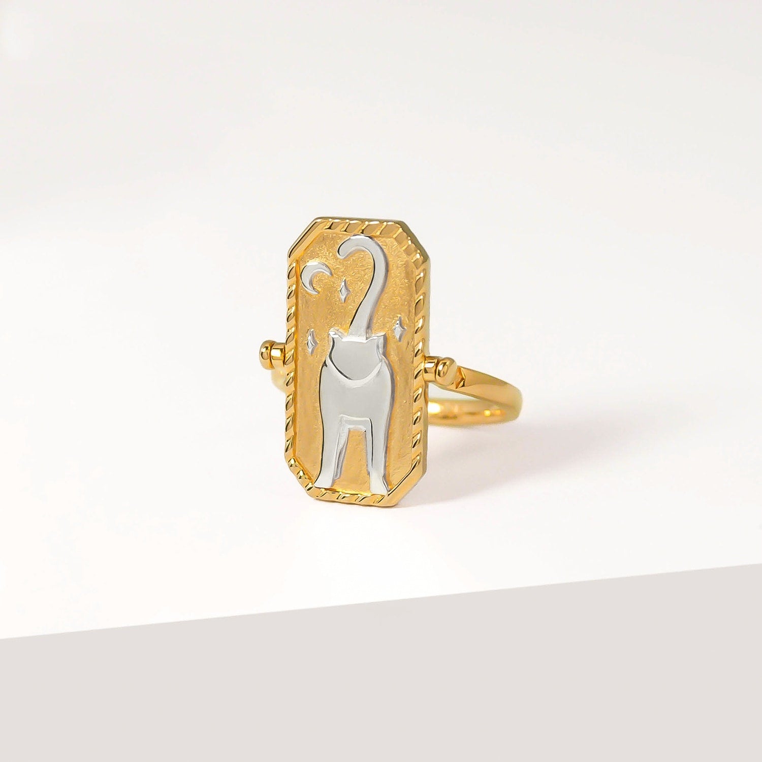 This Meowdy Cat Mood Ring by Marie June Jewelry pairs playful artistry with luxurious finish. The cat-inspired silhouette and sparkling cubic zirconia detail create a design full of character and charm, symbolizing independence and curiosity. With its radiant 24k gold vermeil finish, the ring is both a conversation piece and a meaningful expression of personality, ideal for everyday wear or as a thoughtful gift.
