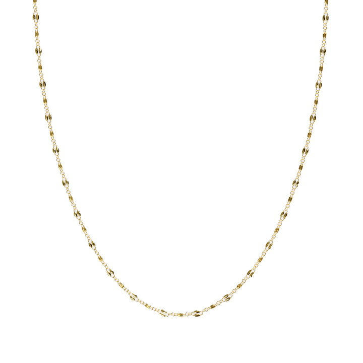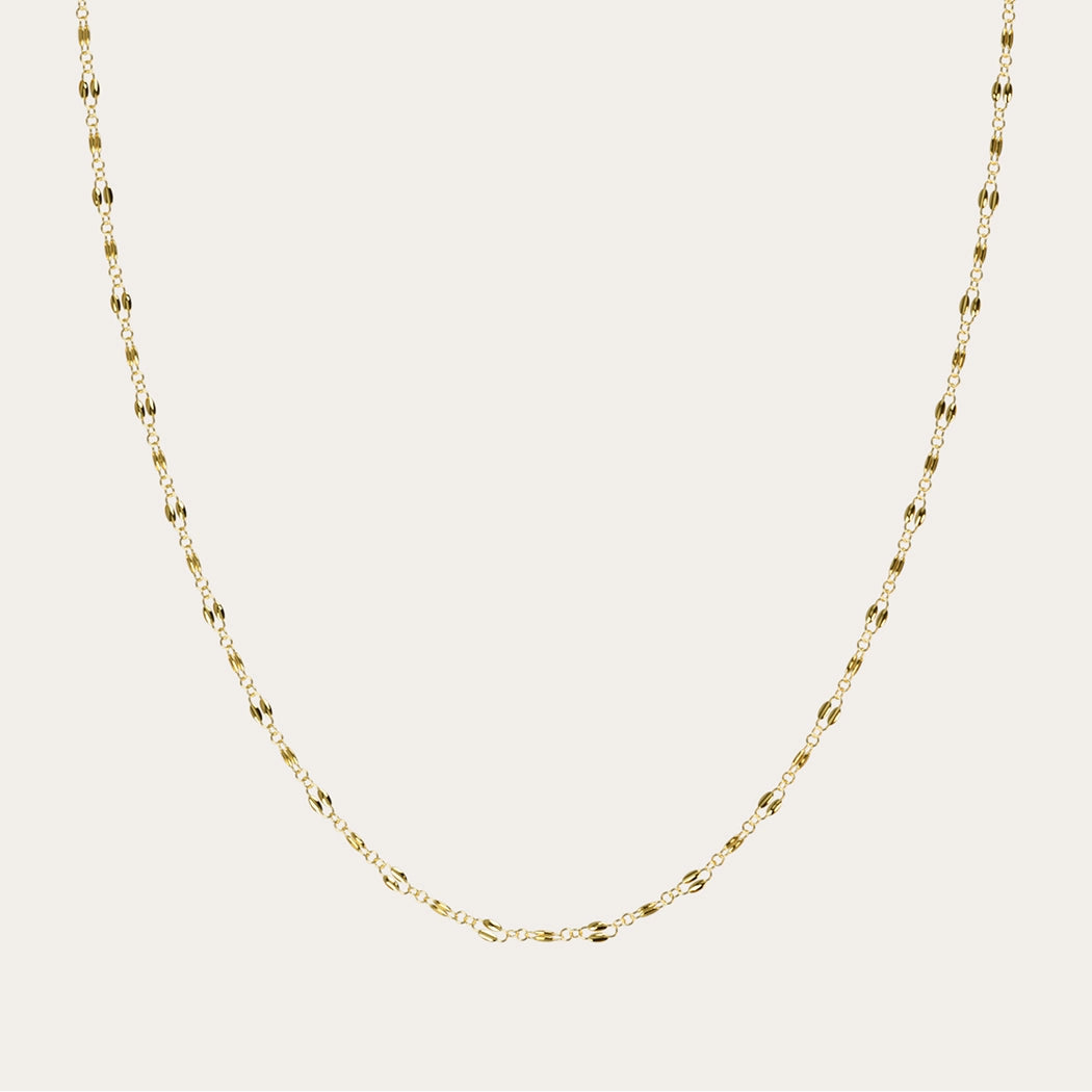 Crafted from high-quality gold-filled metal. Features a thin polished chain with clasp and extender for adjustable length.