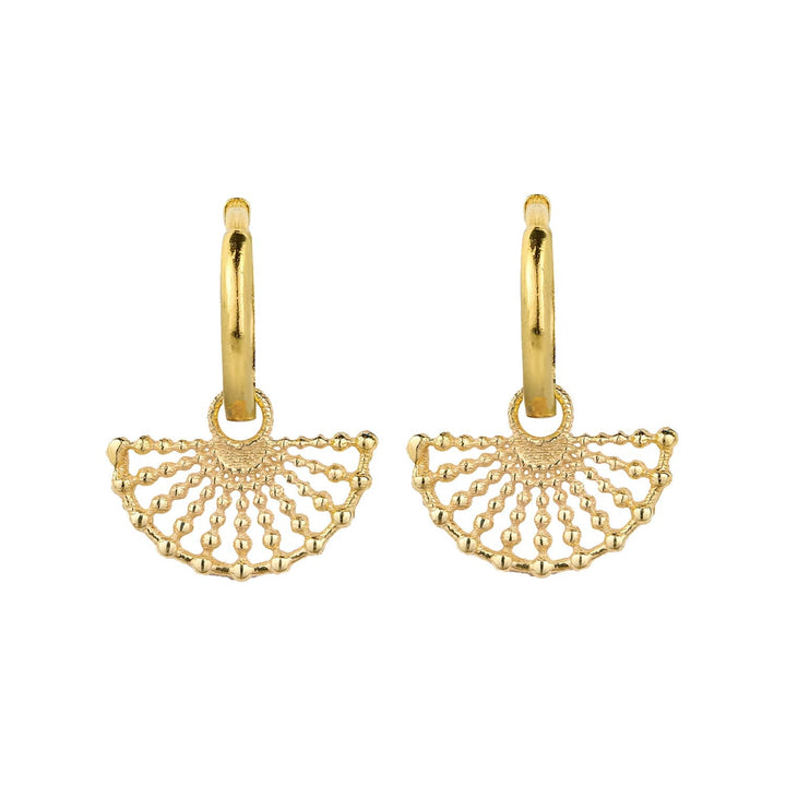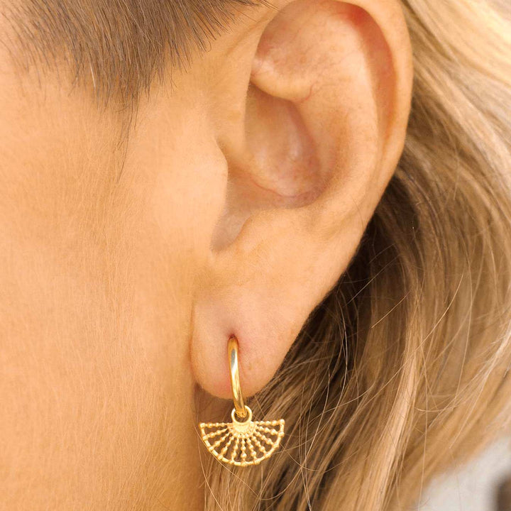 These Surya Gold Huggie Hoop Earrings by Charlotte's Web Jewellery radiate warmth and elegance. Inspired by the Sanskrit word for sun and the ornate fans of Seville, their design features cascades of tiny golden beads that evoke rays of sunlight. Ethically handcrafted, they carry a sense of brightness and cultural richness, making them both symbolic and stylish. Worn as everyday essentials or as standout accents, they embody timeless sophistication and joy.