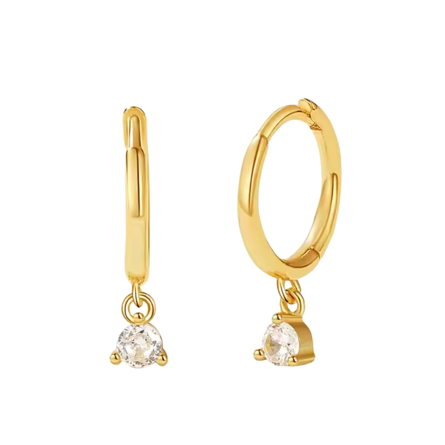 These earrings are crafted from a 100% recycled sterling silver base with a thick layer of high-quality 14k gold plating. They feature a single zirconia stone and are waterproof and tarnish-free.