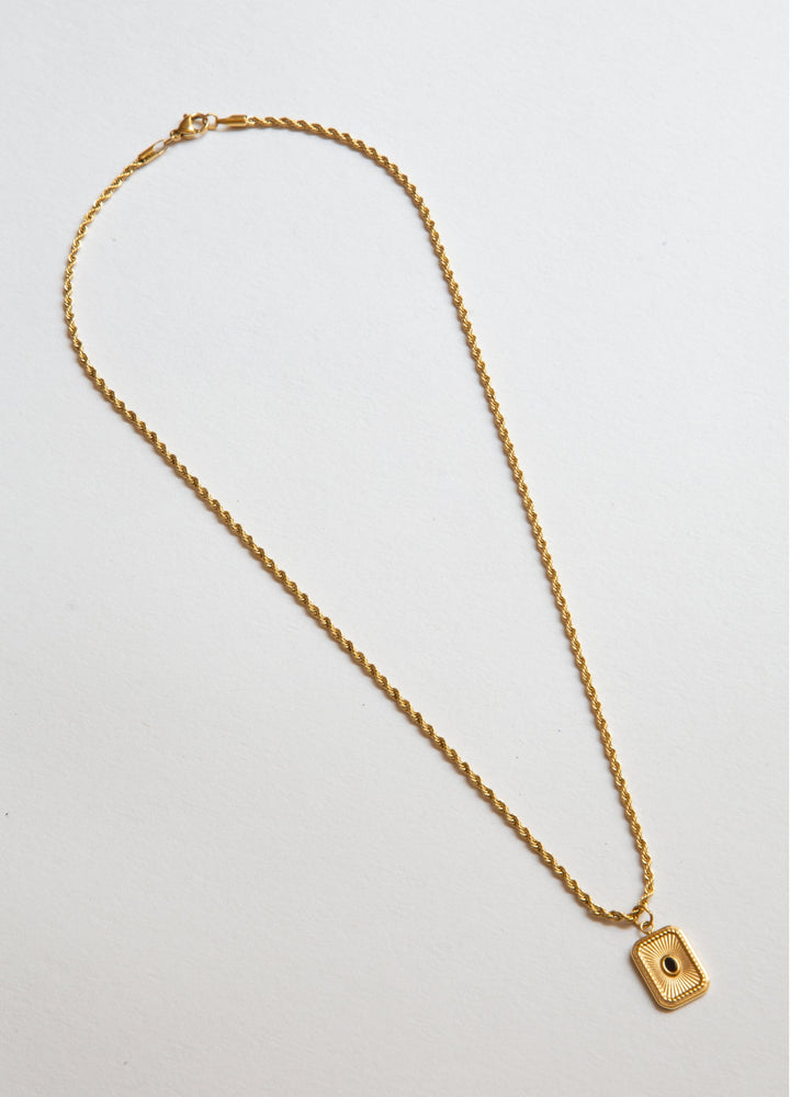 Skylar Onyx Necklace Black Gemstone Pendant Charm Gold Rope Chain Layering Modern Contemporary Unisex Men Women