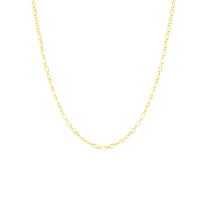 This Textured Gold Mini Link Chain Necklace by Mejoma is a high-quality accessory perfect for elevating your style. The unique textured design adds depth and dimension to this mini link chain, making it a truly one-of-a-kind piece. This necklace is a perfect everyday accessory that adds a touch of simple elegance to any outfit.