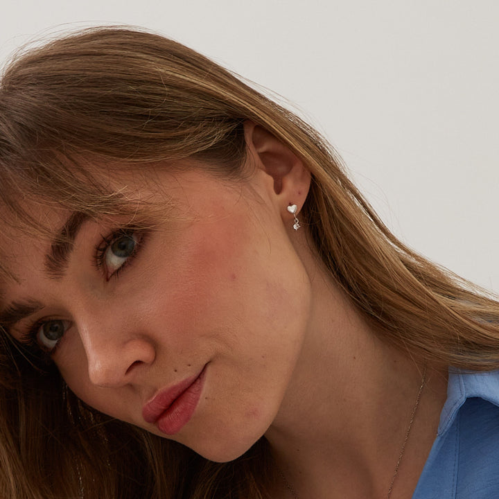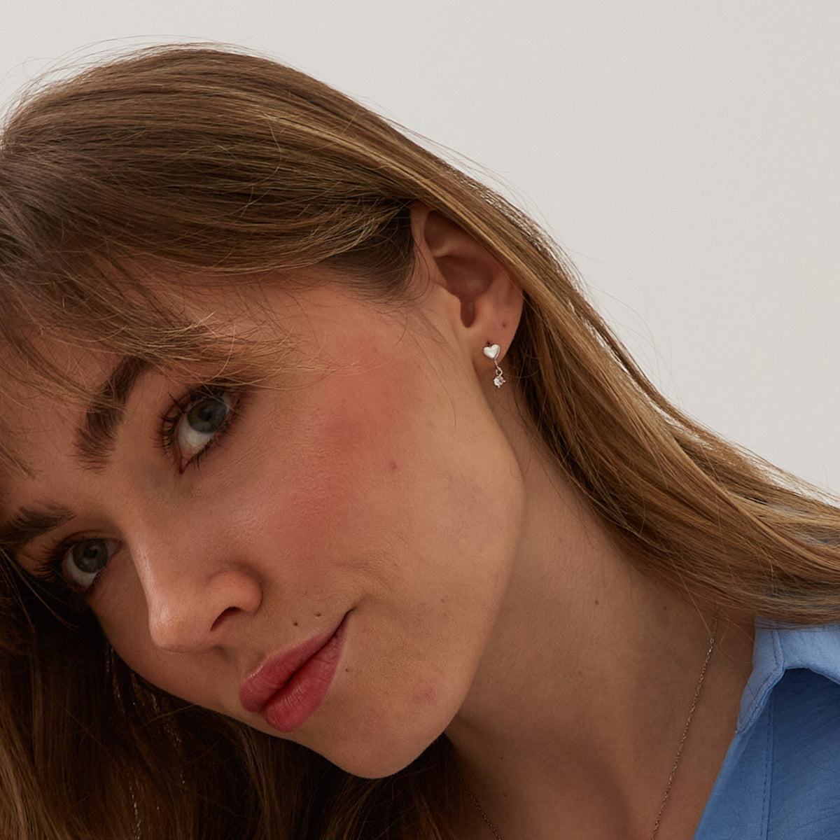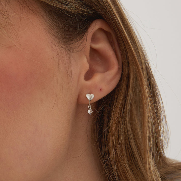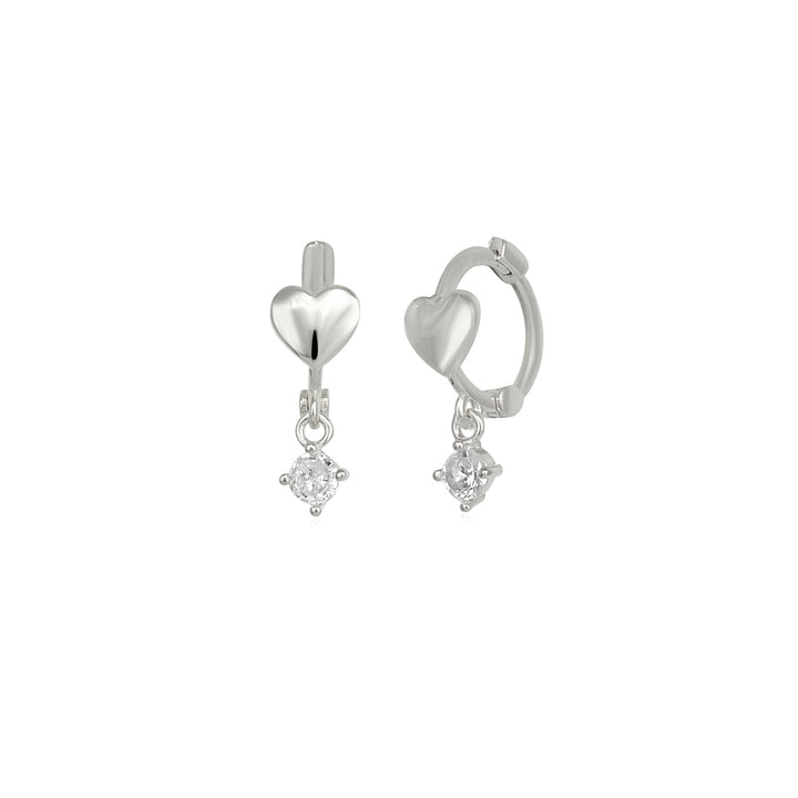 Heart Huggie Hoop Sterling Silver Drop Earring - Silver