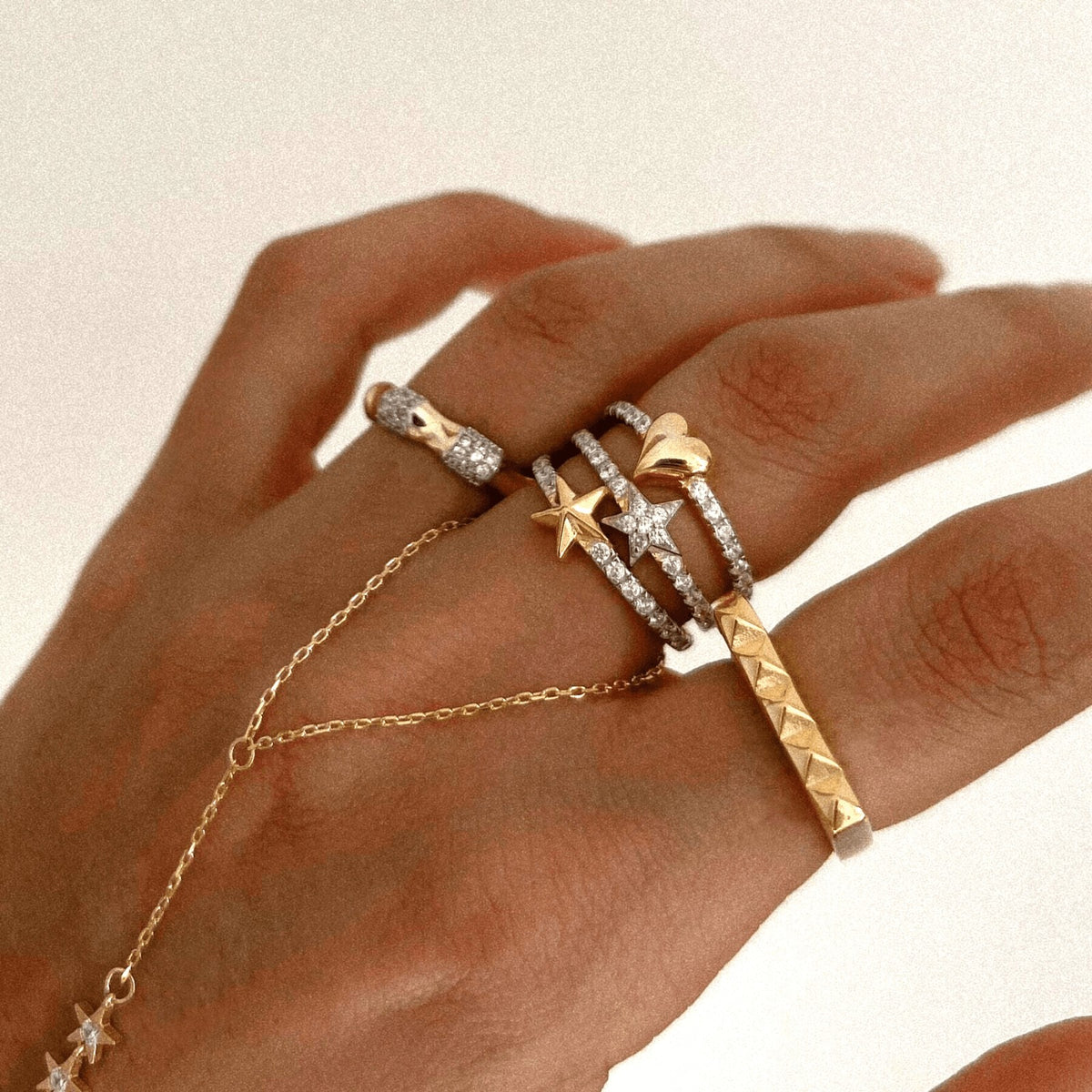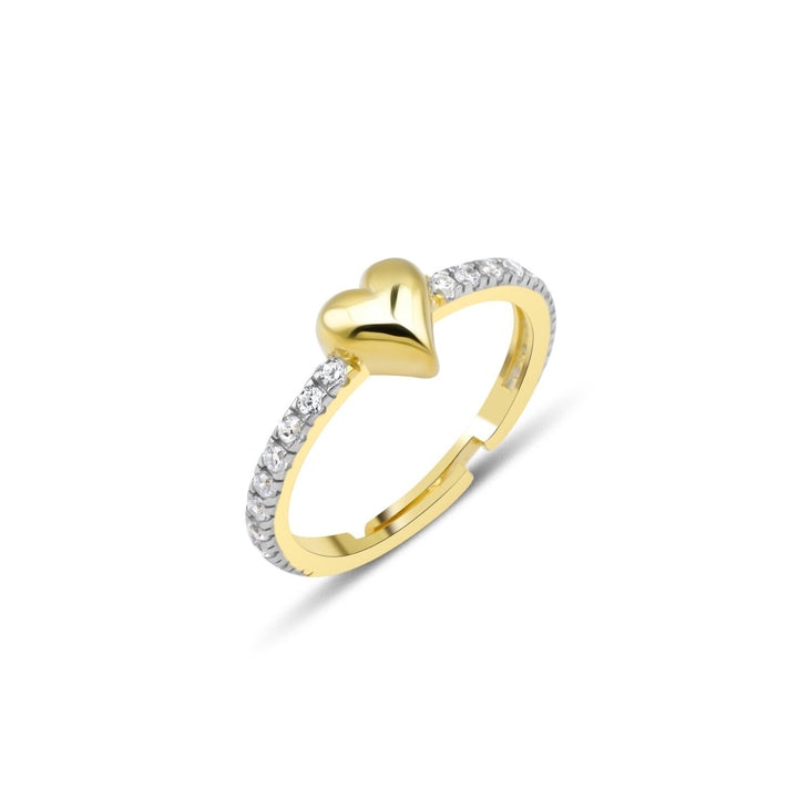 Love Heart Zirconia Half Round Adjustable Sterling Silver Ring - Gold