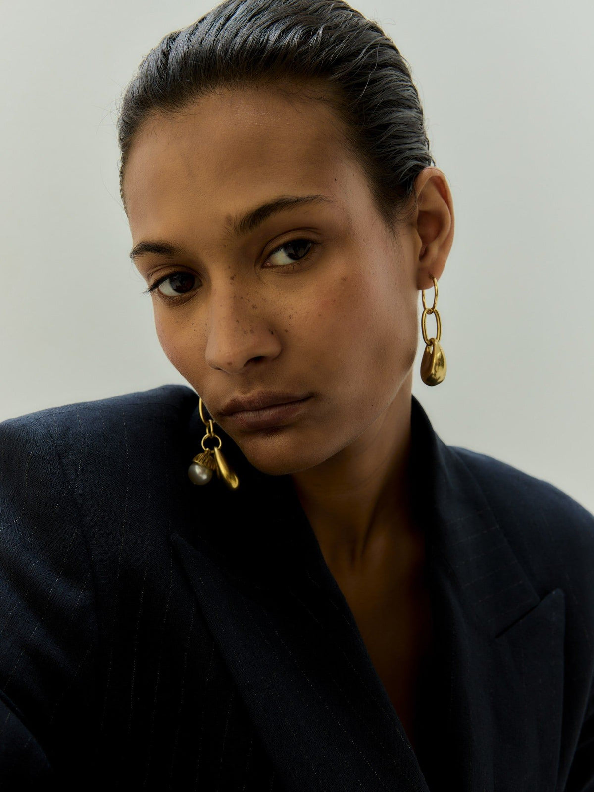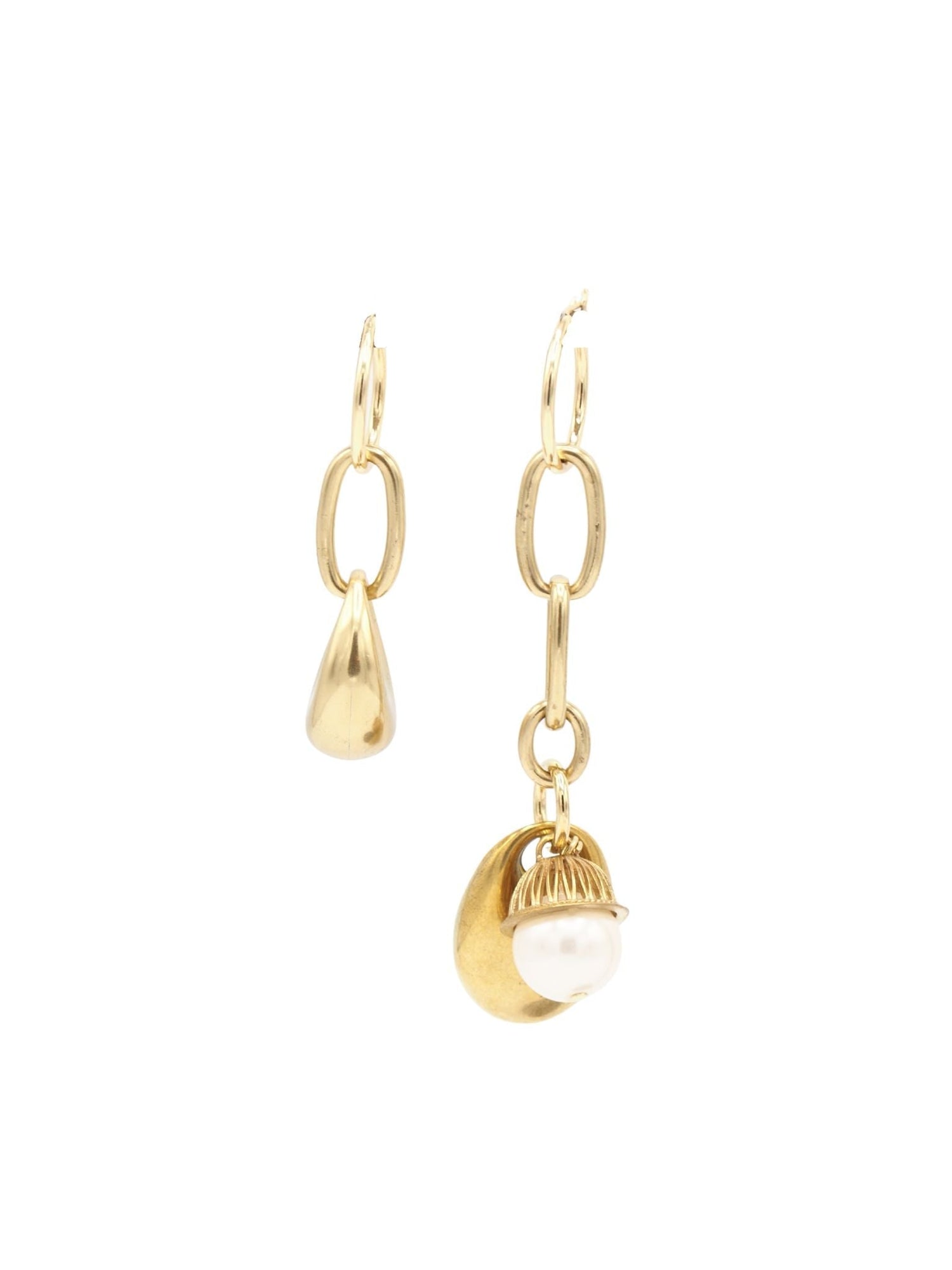 These Gorrito Earrings by Sita Nevado are a unique and asymmetrical accessory that brings a playful, bohemian flair to your style. The Creole-style hoop features both a long and a short drop, adorned with oval links and pendants. The design creates a dynamic and eye-catching look that is perfect for expressing a creative, free-spirited aesthetic. These earrings are a stylish and modern take on classic earring forms, adding an intriguing detail to your look.