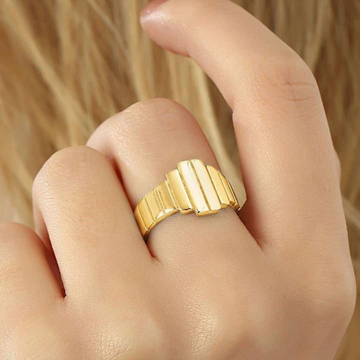 Multi Layered Rectangular Sterling Silver Ring - Gold