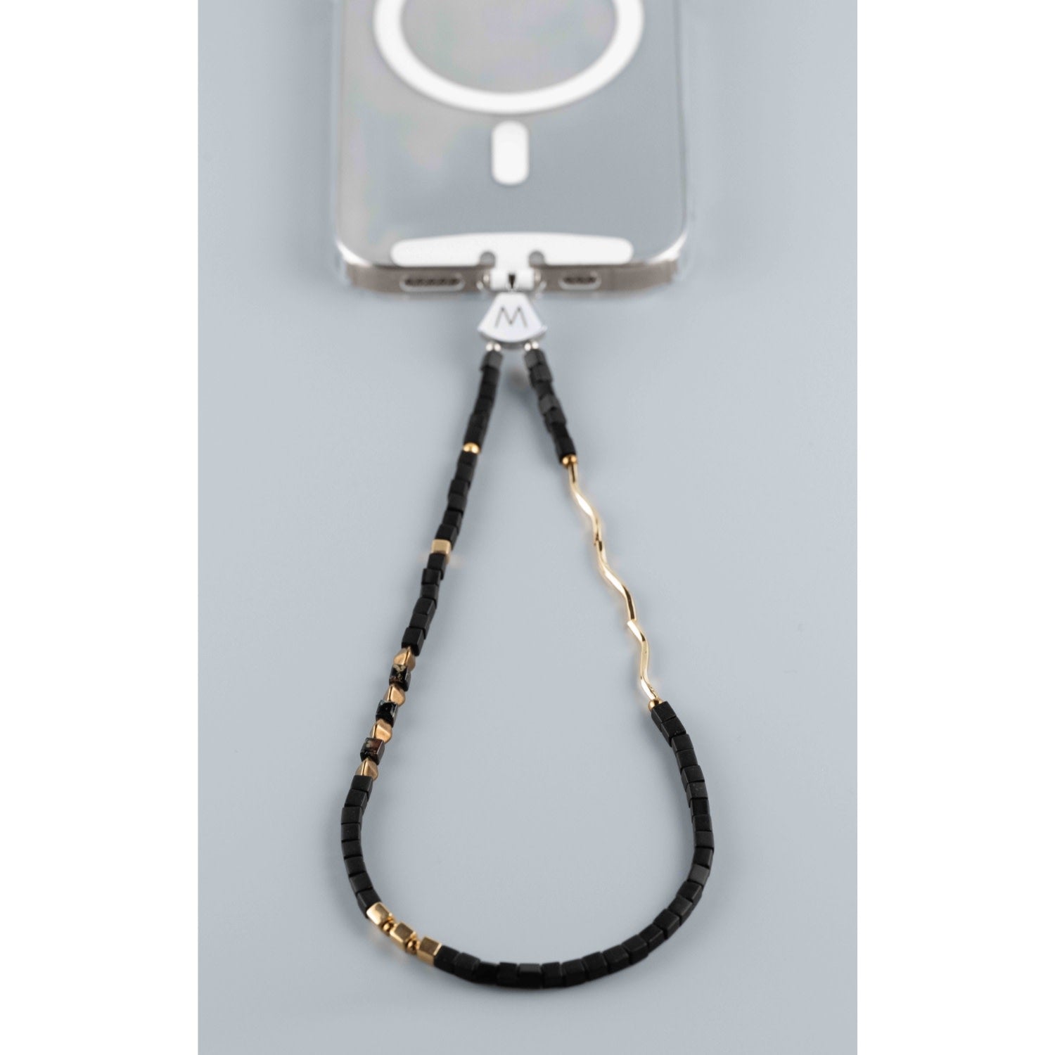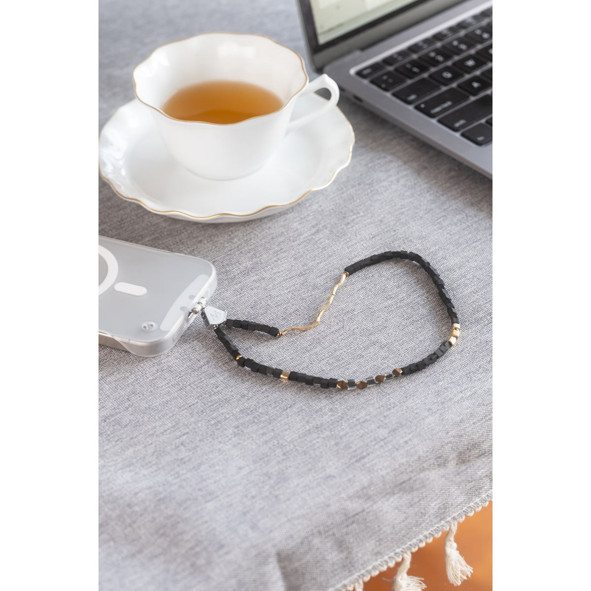 This phone bracelet is handmade from Japanese Miyuki beads and high-grade American bead thread. It features a stainless steel buckle.