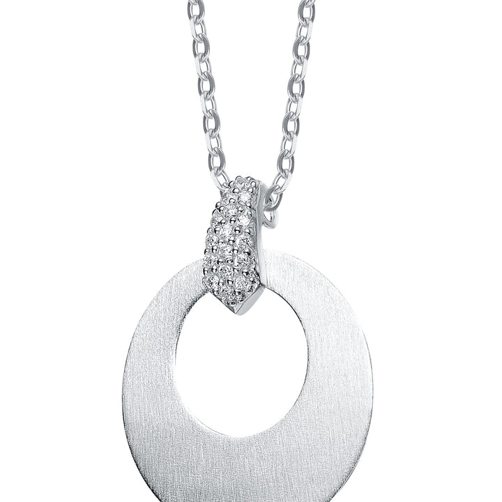 Sterling Silver White Cubic Zirconia Stones Oval Pendant