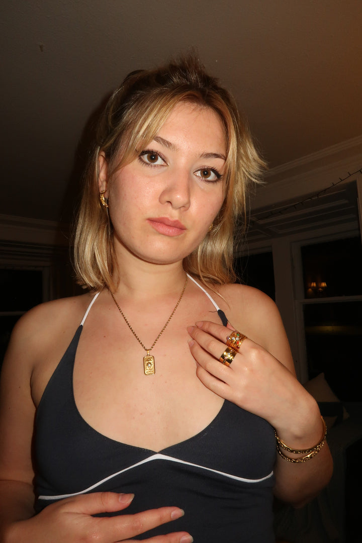 This necklace is crafted from 316L stainless steel with 18k gold plating. It is waterproof and hypoallergenic.