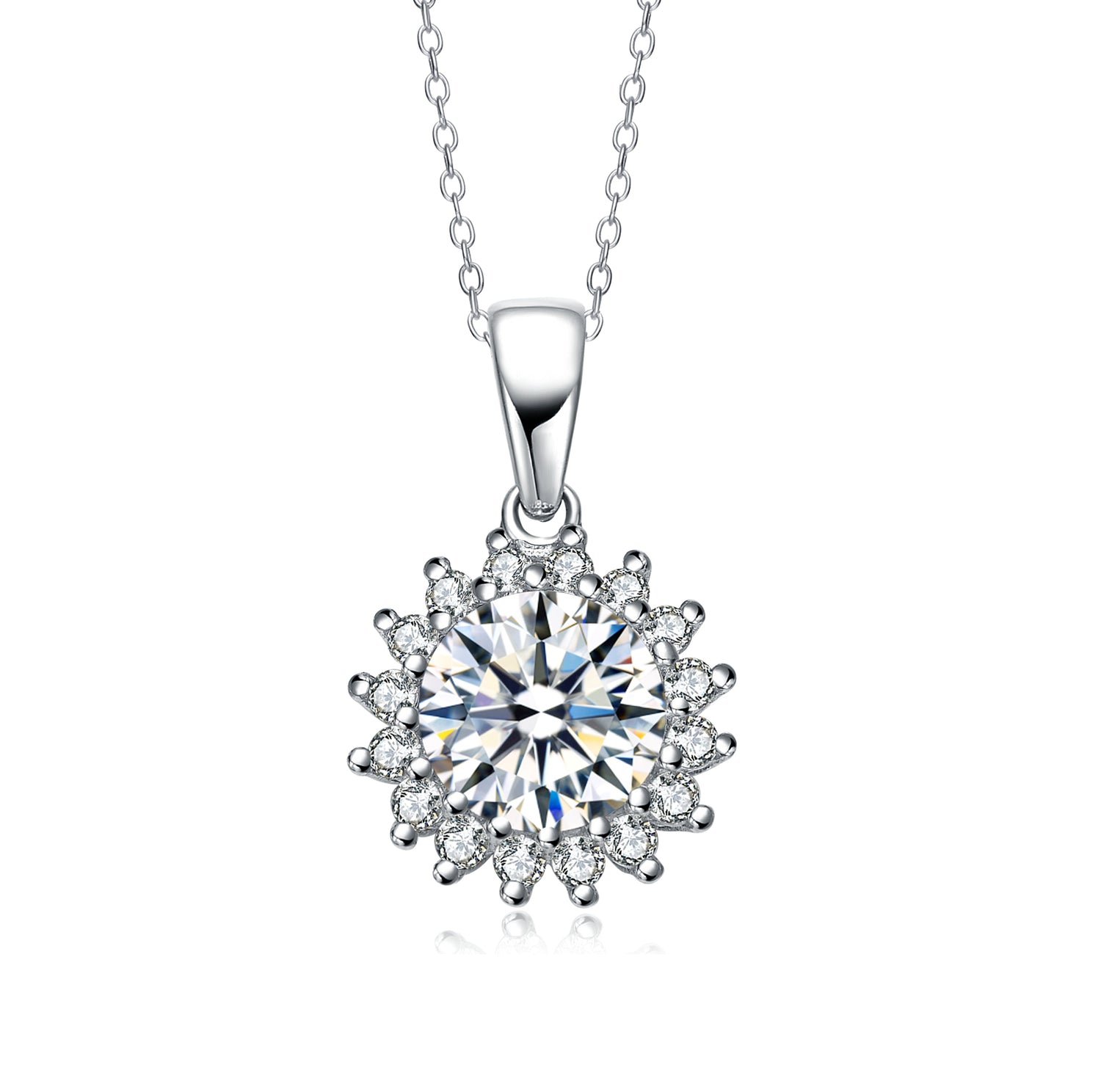 This necklace is crafted from sterling silver and features a burst of clear cubic zirconia stones.
