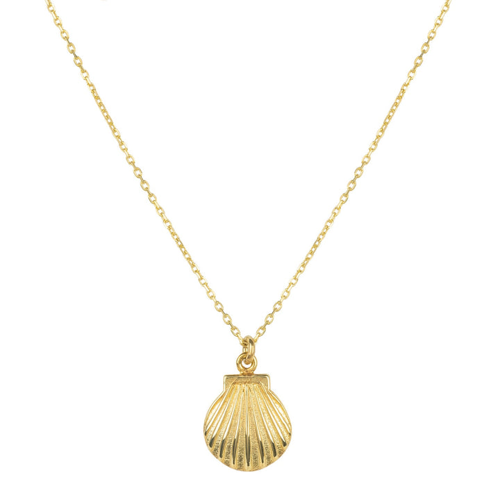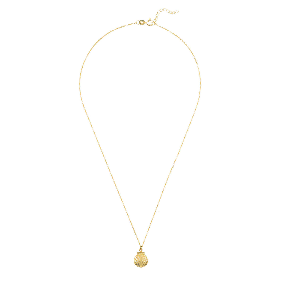 925 sterling silver dipped in 18ct gold; scallop shell-shaped pendant on fine chain; lobster clasp with size adjuster.