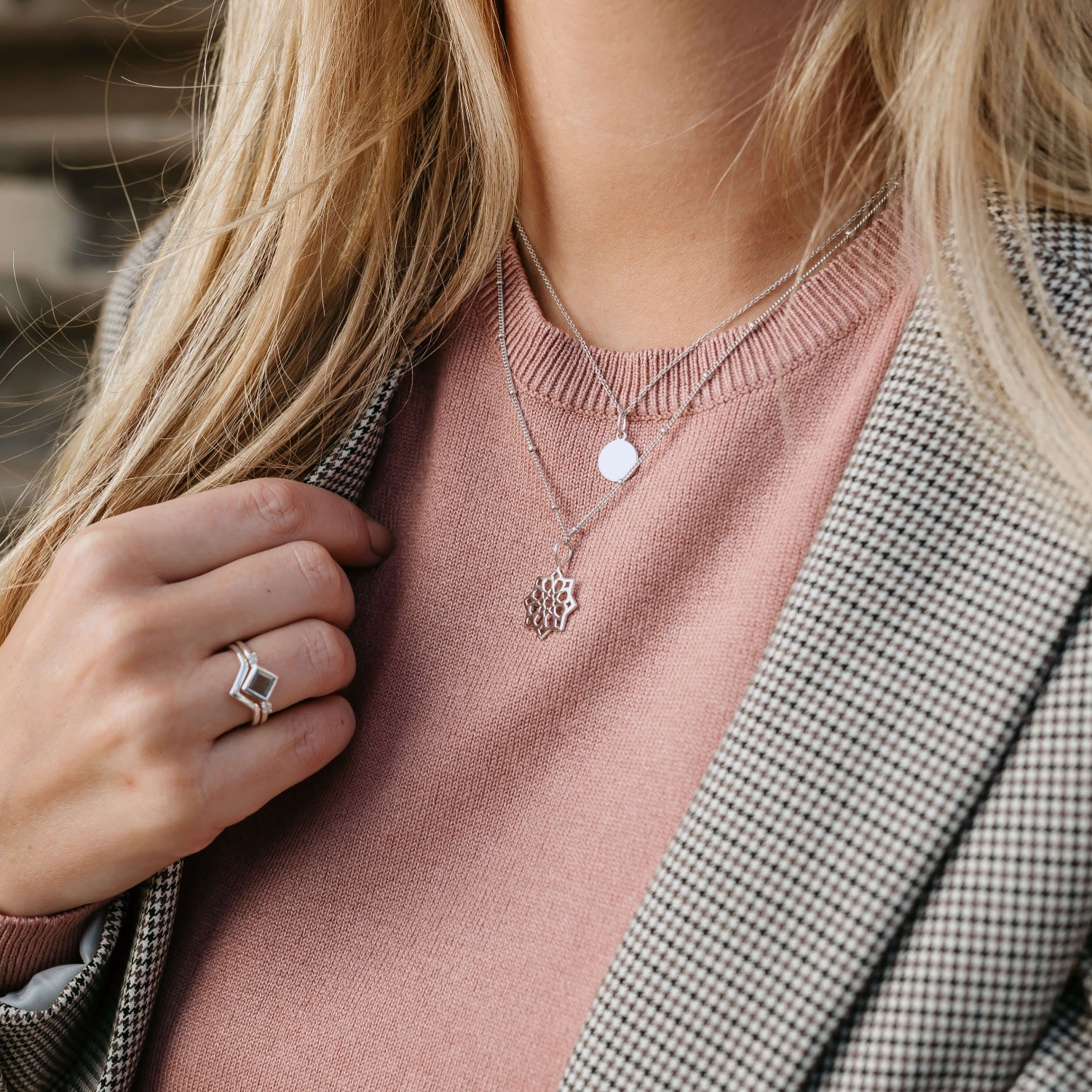This chain is made of solid sterling silver and has a 2" extender, allowing it to be worn at 18", 19", or 20" length.