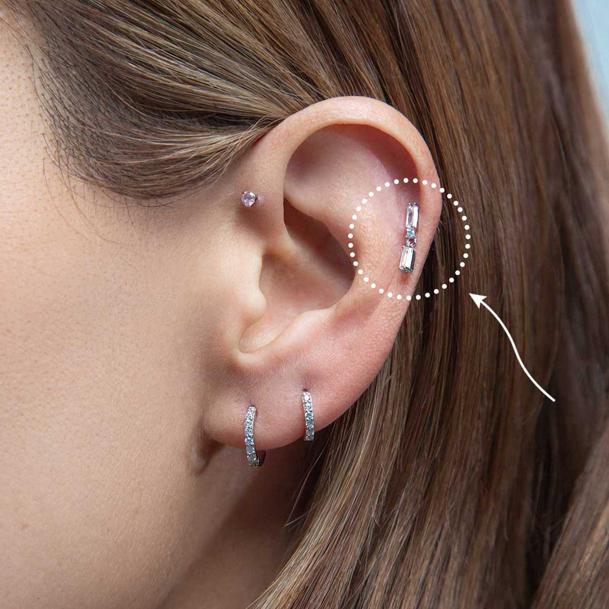 925 sterling silver with vermeil gold plating. Double baguette design with pave accents.