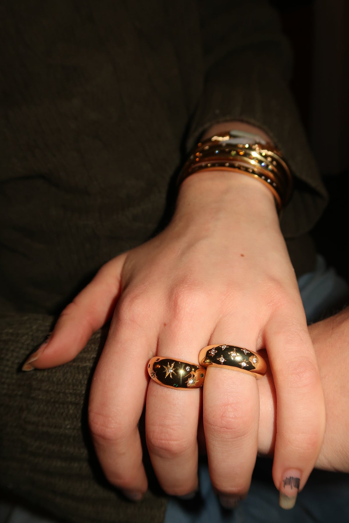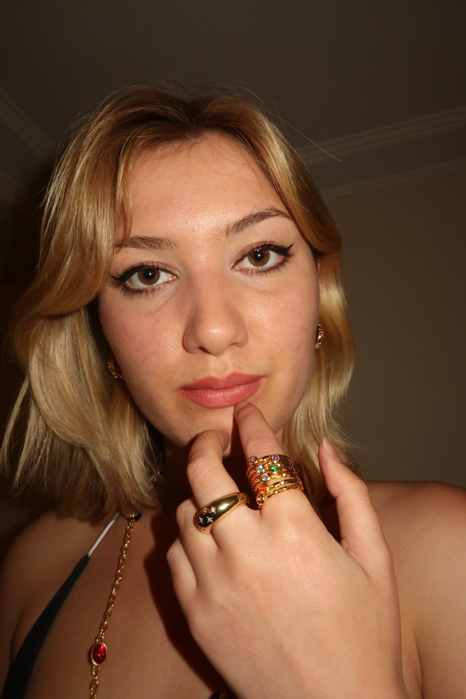 This Chloe’s Star Ring In Gold by Recreation Jewels is a standout piece that combines exceptional durability with a luxurious finish. Its star design offers a whimsical touch, while the waterproof and hypoallergenic properties ensure it is practical for daily wear. This ring embodies a sense of playful elegance and is perfect for adding a subtle touch of magic to your everyday look. It's a symbol of personal style and enduring charm, crafted for those who want a piece that is as strong as it is beautiful.