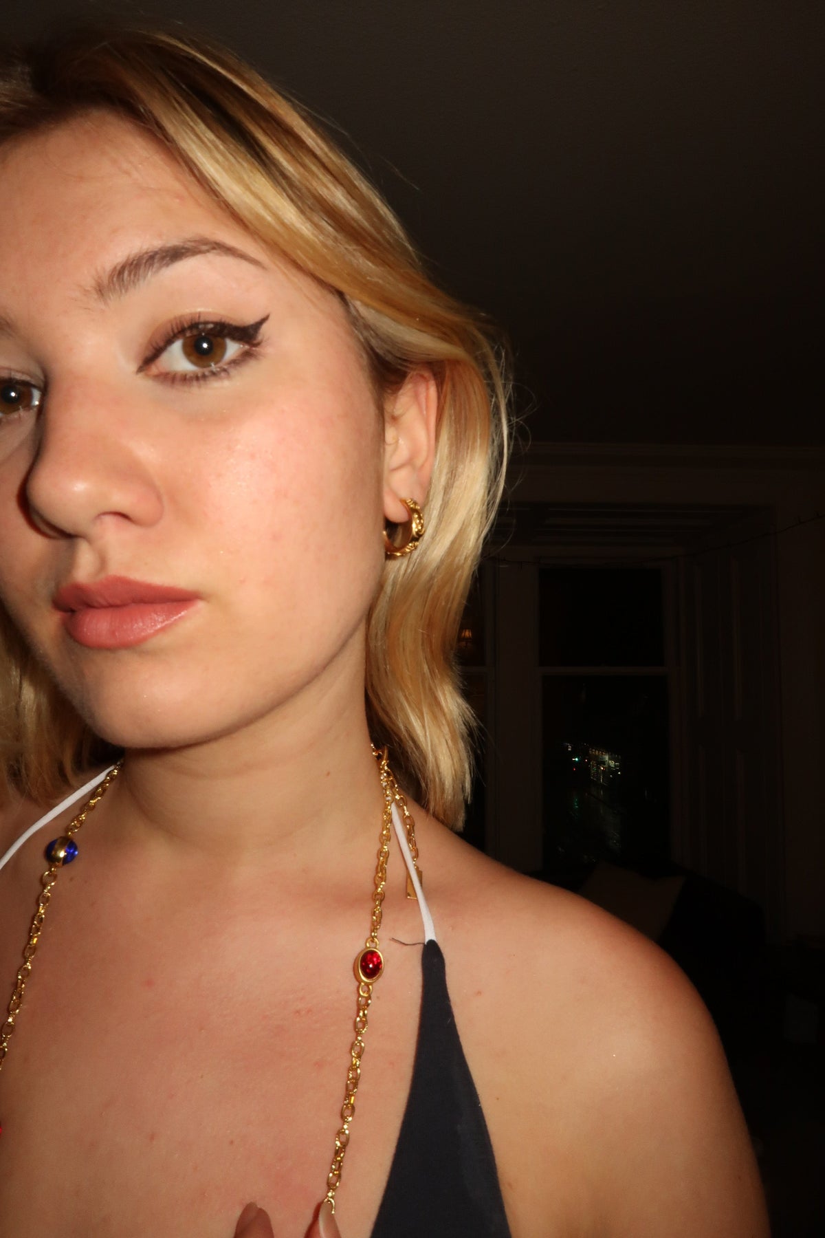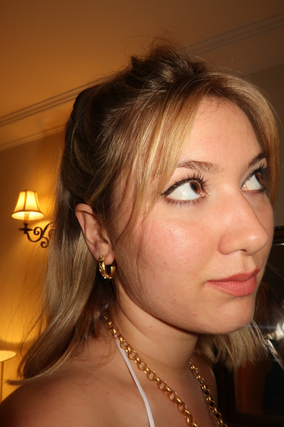 These earrings are crafted from high-quality titanium and are 18k gold-plated. They are hypoallergenic and waterproof.