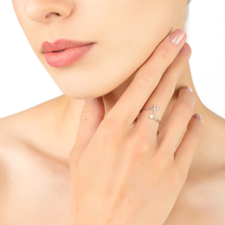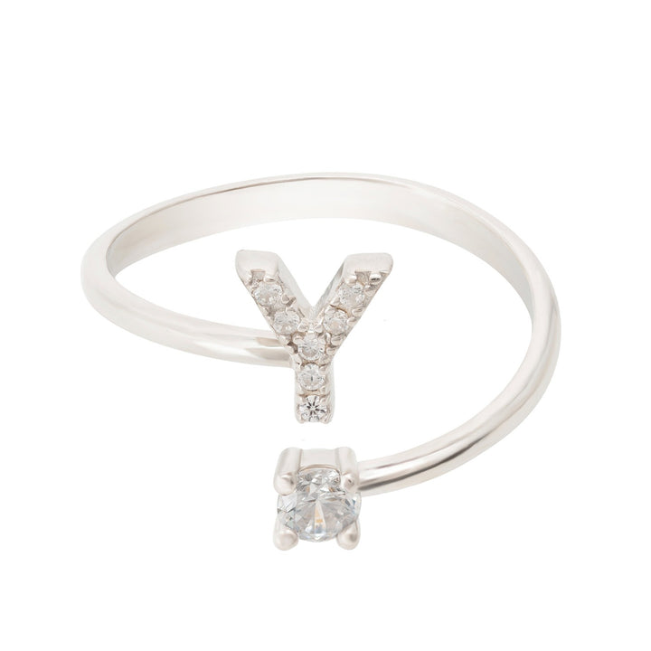 This Initial Ring by Latelita is a beautifully styled and personal accessory. The open band design allows for a slight size adjustment and features a glittering cubic zirconia adorned with the letter 'Y' on one side and a larger cubic zirconia on the other. Its petite and delicate style makes it perfect for stacking with other rings or wearing alone for a subtle, sophisticated finish. This ring is a perfect personalized gift that adds a hint of sparkle to any outfit.