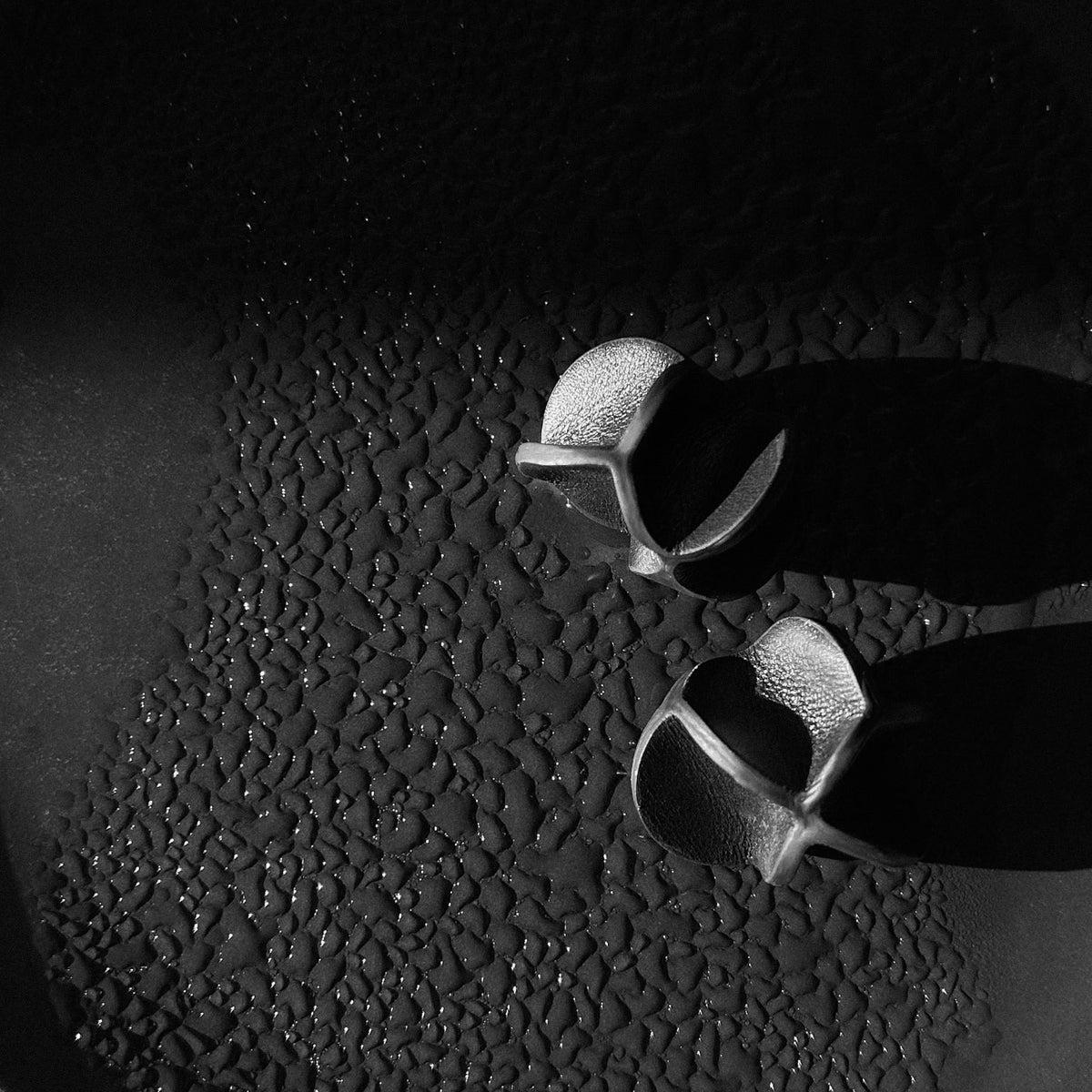 These earrings are handmade from high-quality leather. The color is black. They are shaped to create a multi-dimensional effect.