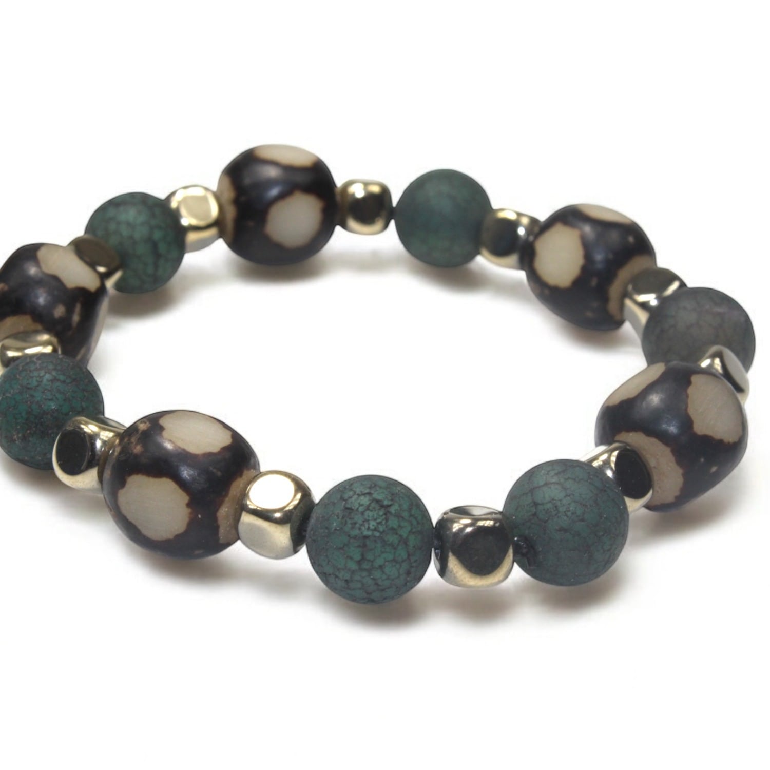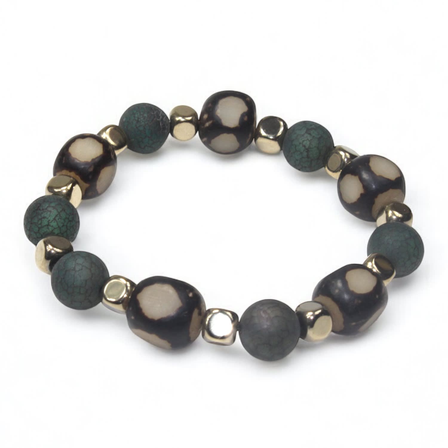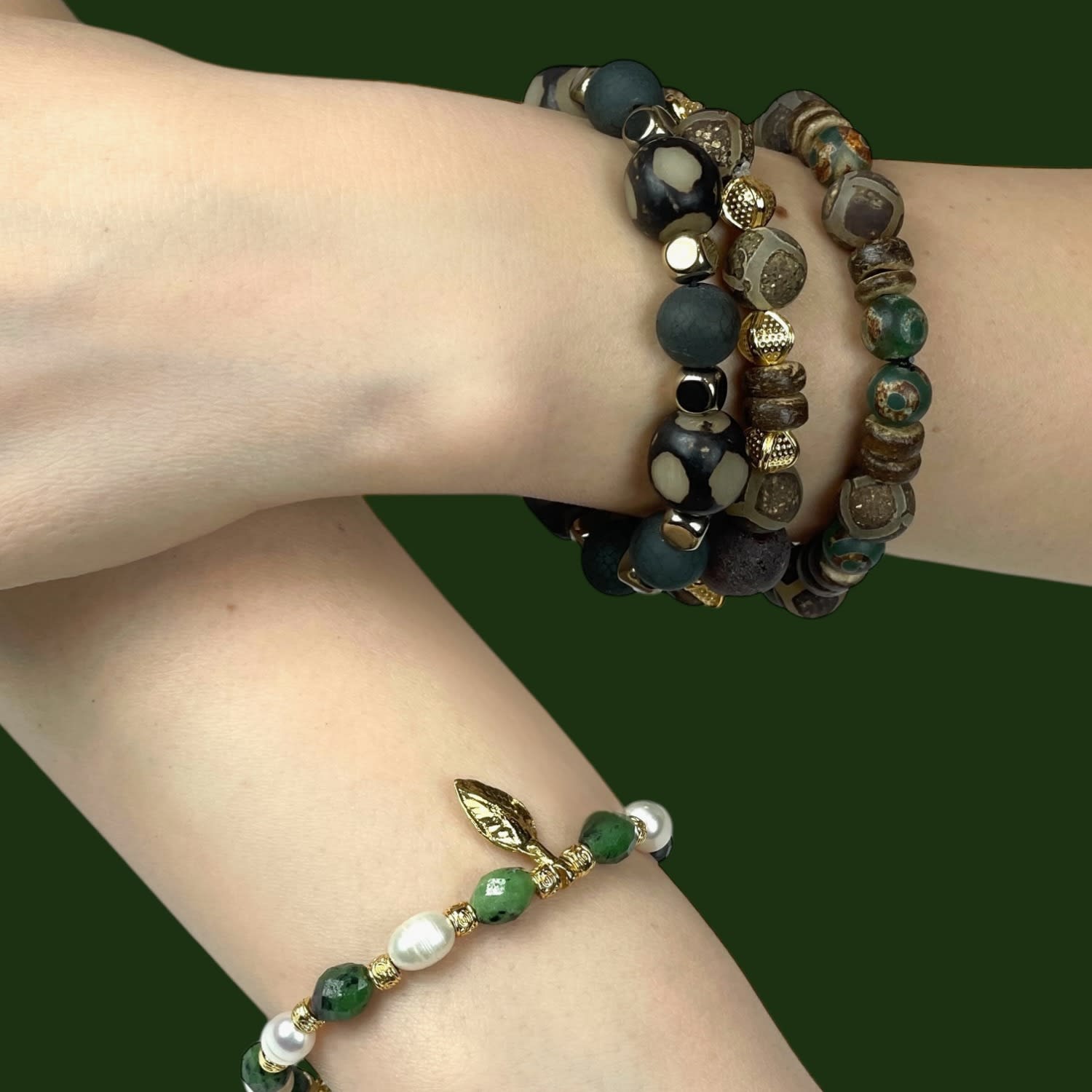 This Saphira Tibetan Agate Beaded Bracelet by By Virgo is a spiritual blend of Bodhi seeds, agate, and hematite. Each bead is carefully selected to represent grounding, wisdom, and strength, making this bracelet both meaningful and stylish. Adjustable for comfort, it’s a timeless piece with natural character.