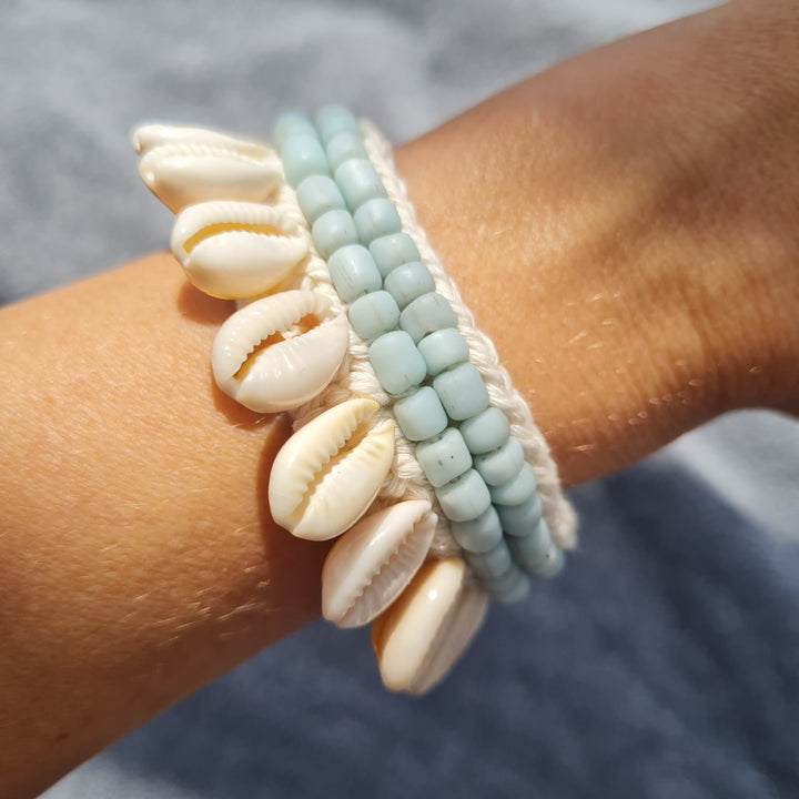 Bene Cowrie Shell & Beaded Macrame Bracelet - Blue